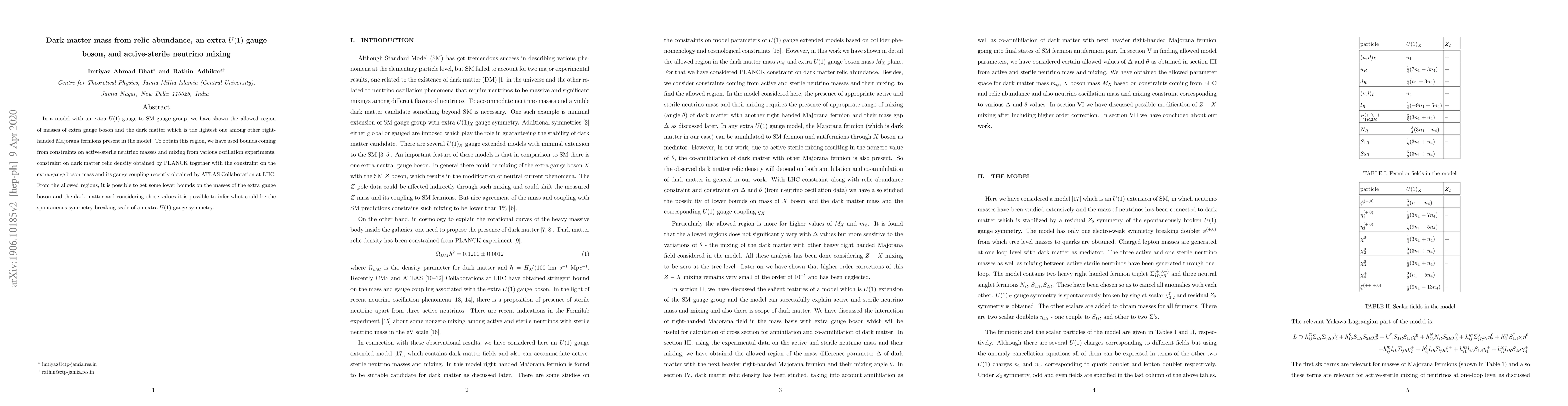 This paper explores a model with an extra $U(1)$ gauge symmetry, determining the mass range for its gauge boson and dark matter, which is the lightest right-handed Majorana fermion. It uses constraints from neutrino oscillations, dark matter relic density, and LHC data to establish lower bounds for these particles and infer the spontaneous symmetry breaking scale.