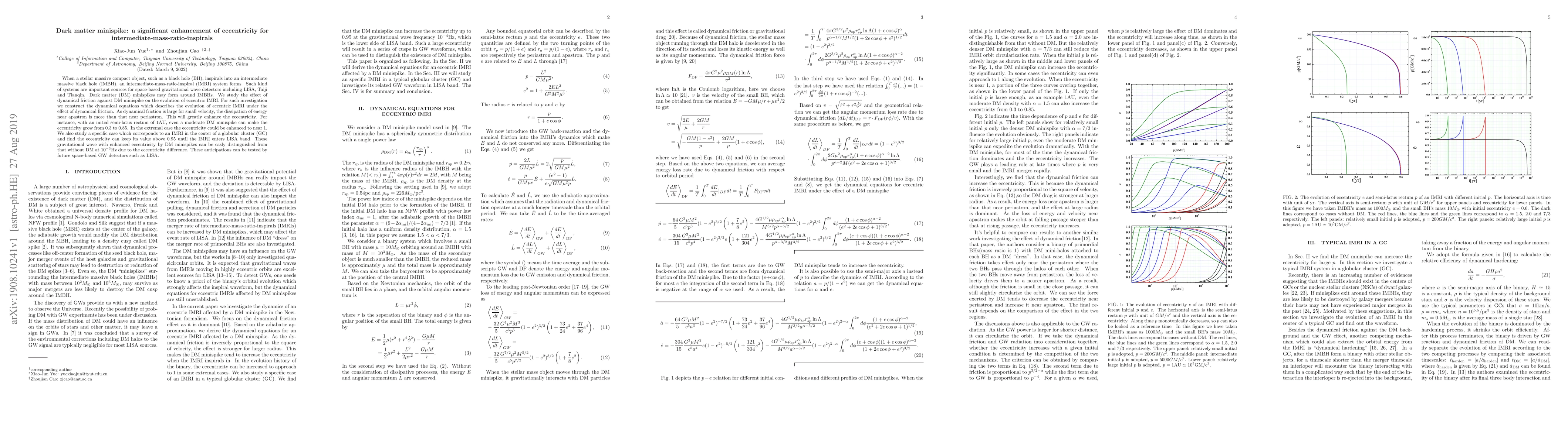 This paper investigates how dark matter (DM) minispikes around intermediate massive black holes (IMBHs) affect the eccentricity of intermediate-mass-ratio-inspirals (IMRIs). The study finds that dynamical friction from DM minispikes can significantly enhance the eccentricity, potentially increasing it from 0.3 to 0.85, and even to near 1 in extreme cases. These enhanced eccentricities can be detected by future space-based gravitational wave detectors like LISA.