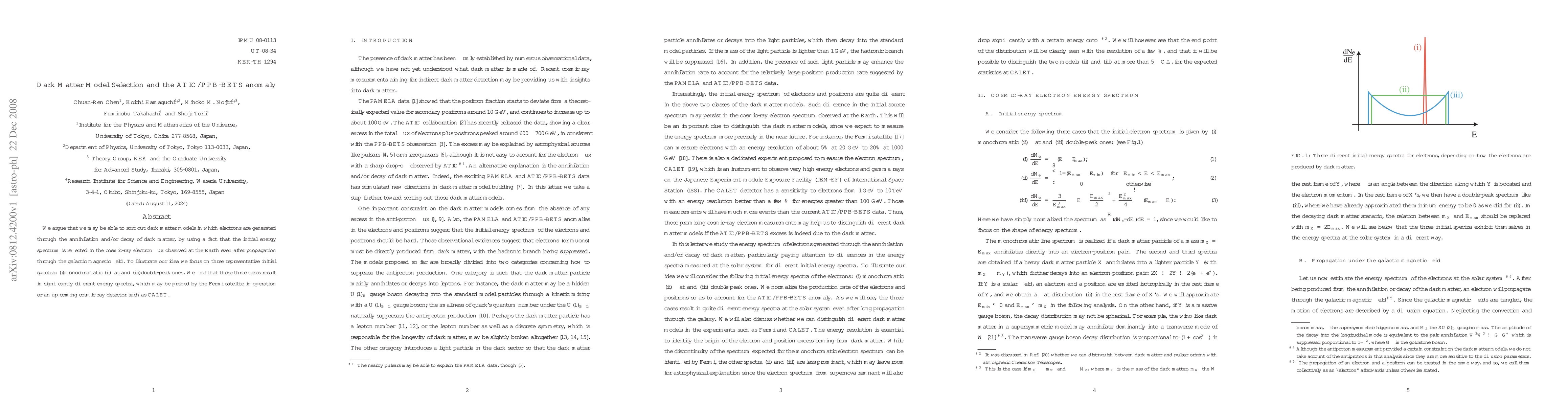 We argue that we may be able to sort out dark matter models in which electrons are generated through the annihilation and/or decay of dark matter, by using a fact that the initial energy spectrum is reflected in the cosmic-ray electron flux observed at the Earth even after propagation through the galactic magnetic field. To illustrate our idea we focus on three representative initial spectra: (i)monochromatic (ii)flat and (iii)double-peak ones. We find that those three cases result in significantly different energy spectra, which may be probed by the Fermi satellite in operation or an up-coming cosmic-ray detector such as CALET.
