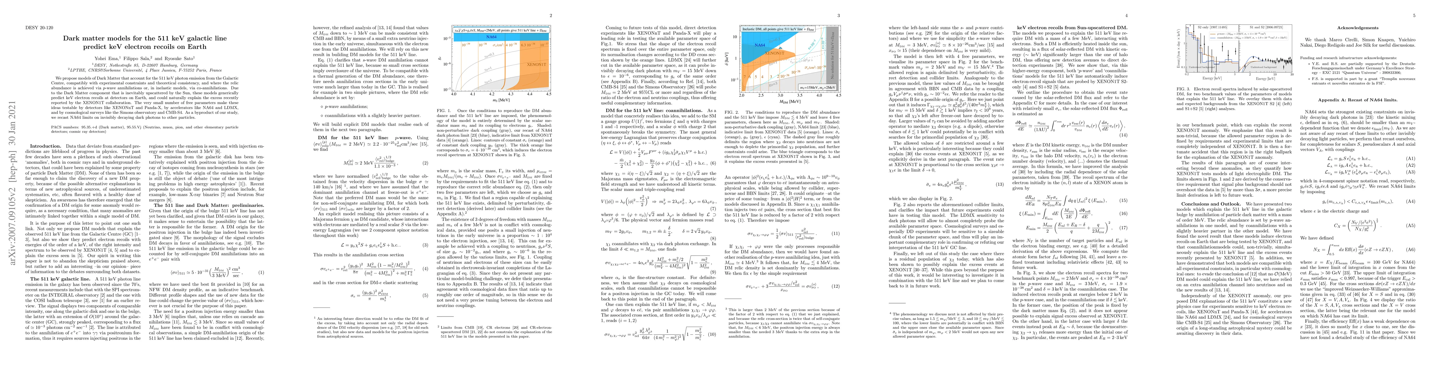 We propose models of Dark Matter that account for the 511 keV photon emission from the Galactic Centre, compatibly with experimental constraints and theoretical consistency, and where the relic abundance is achieved via p-wave annihilations or, in inelastic models, via co-annihilations. Due to the Dark Matter component that is inevitably upscattered by the Sun, these models generically predict keV electron recoils at detectors on Earth, and could naturally explain the excess recently reported by the XENON1T collaboration. The very small number of free parameters make these ideas testable by detectors like XENONnT and Panda-X, by accelerators like NA64 and LDMX, and by cosmological surveys like the Simons observatory and CMB-S4. As a byproduct of our study, we recast NA64 limits on invisibly decaying dark photons to other particles.