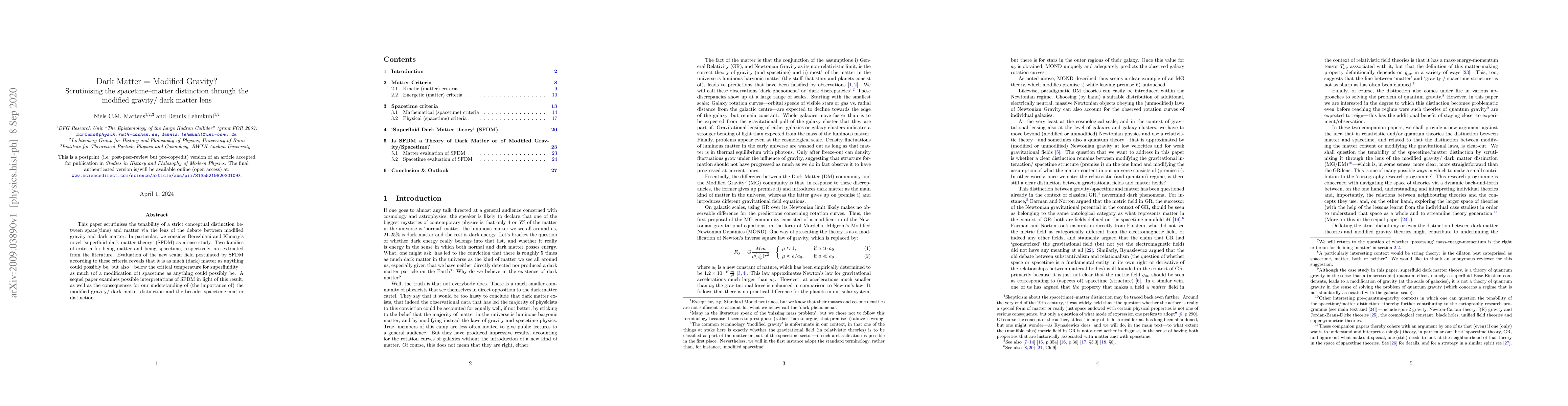 This paper evaluates the 'superfluid dark matter theory' to scrutinize the distinction between spacetime and matter, finding that the theory's scalar field can be interpreted as both dark matter and a modification of spacetime. A sequel will explore the implications for the modified gravity/dark matter debate and the broader spacetime-matter distinction.