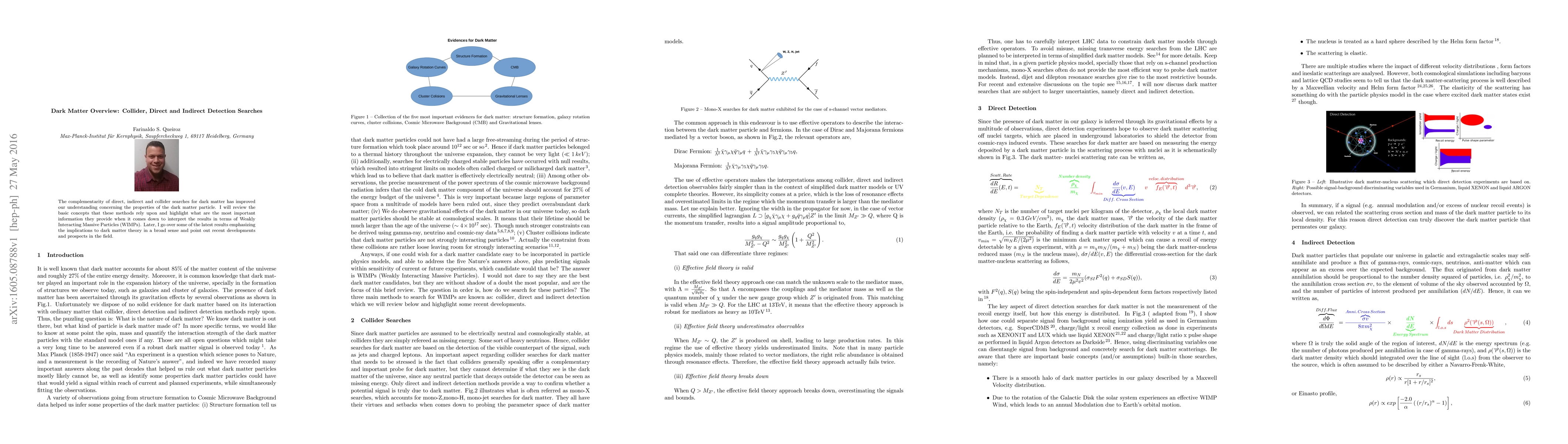 This paper reviews the complementary approaches of collider, direct, and indirect detection in the search for dark matter, focusing on their contributions to understanding Weakly Interacting Massive Particles (WIMPs). It highlights recent findings and developments, emphasizing their implications for dark matter theory.