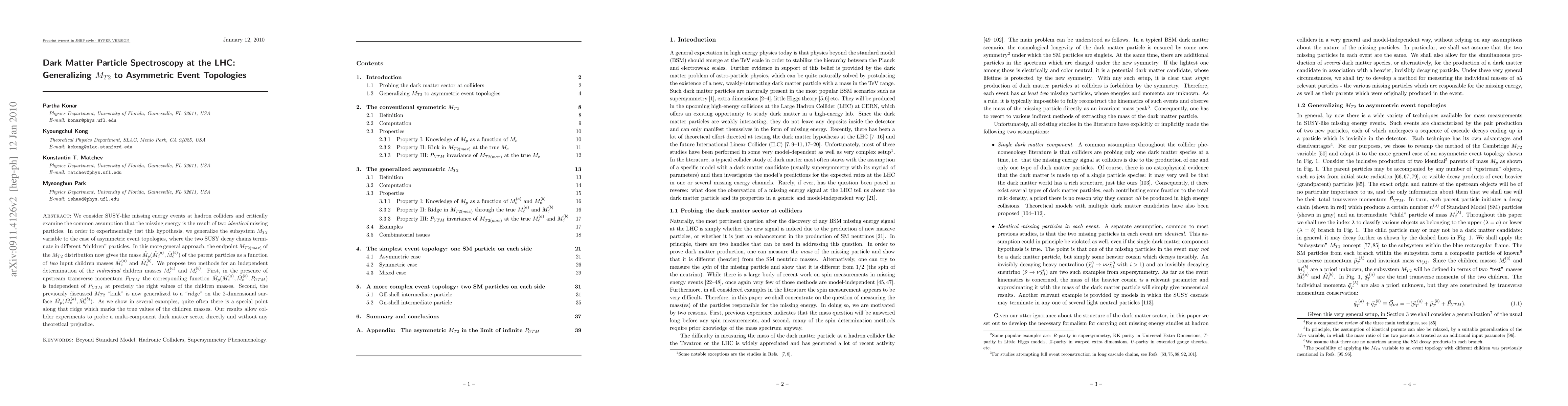 This research proposes a generalized MT2 variable for SUSY-like events with asymmetric topologies at the LHC, enabling independent determination of individual children masses. It introduces methods to test the hypothesis of identical missing particles, allowing for direct probing of a multi-component dark matter sector.