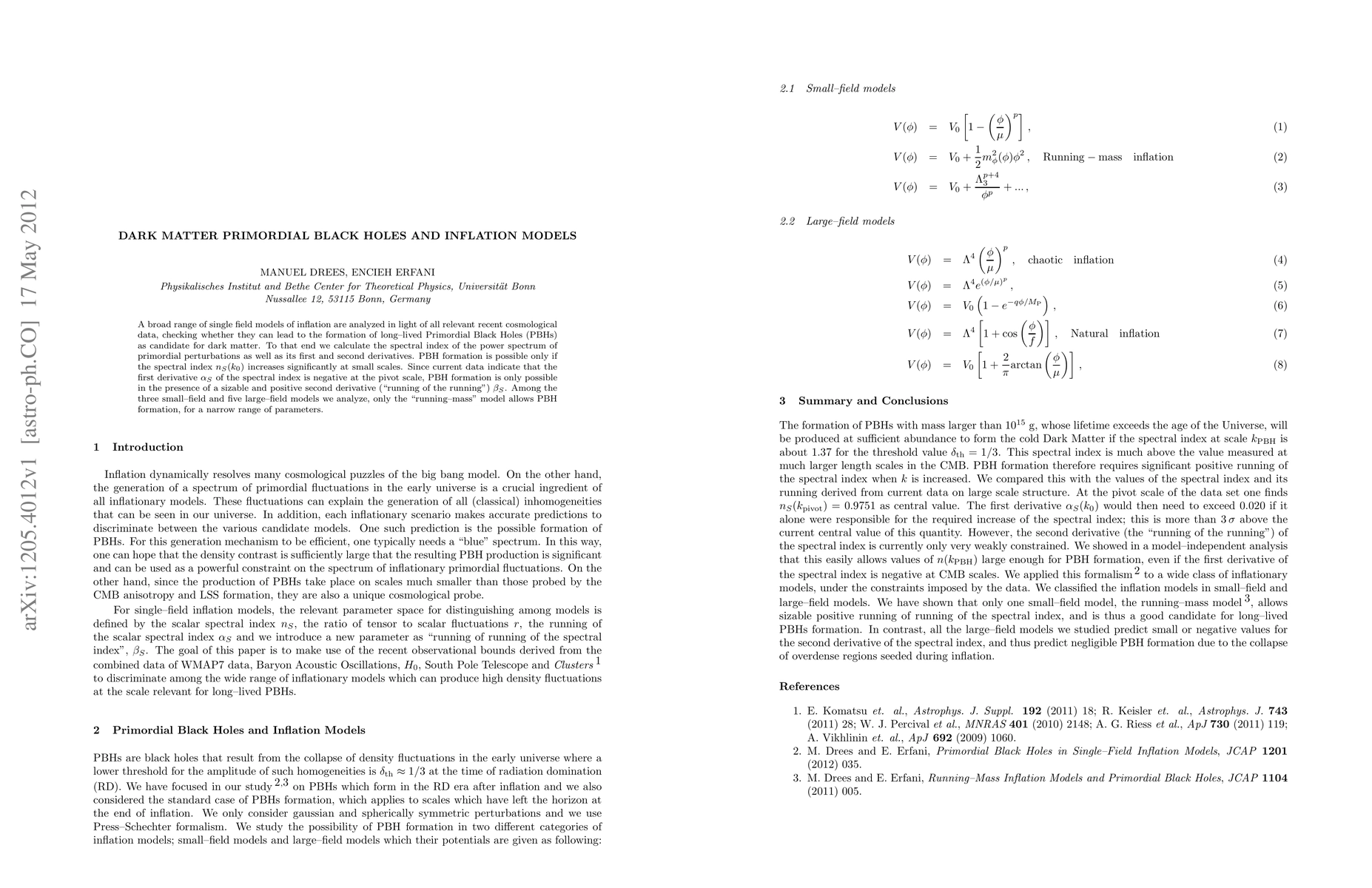 This paper examines various single-field inflation models to determine if they can produce Primordial Black Holes (PBHs) as a dark matter candidate. Only the "running-mass" model, with a specific set of parameters, allows for the formation of PBHs due to a significant positive second derivative of the spectral index.