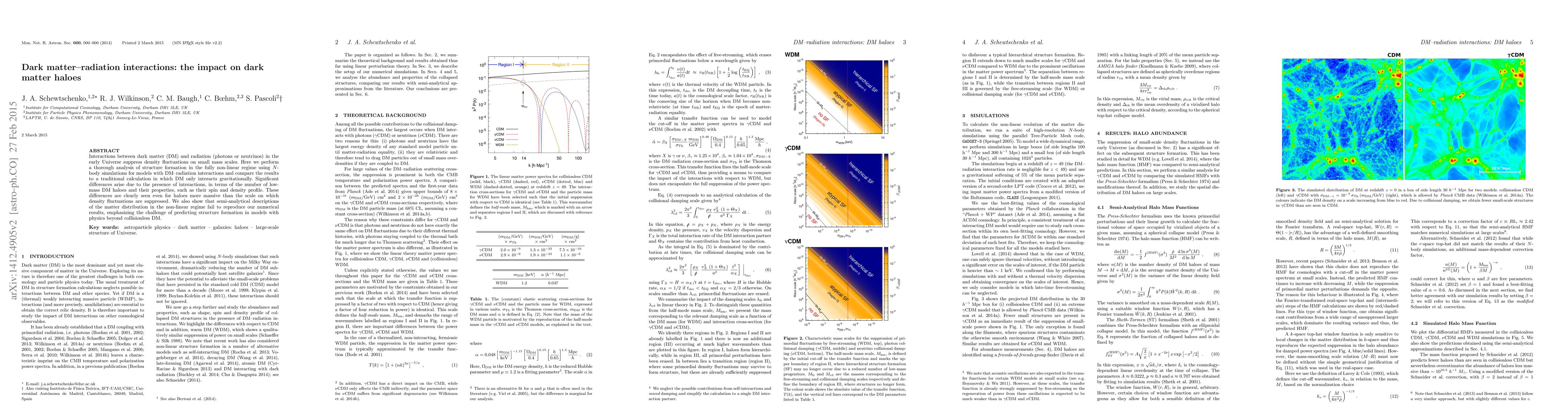 Interactions between dark matter (DM) and radiation (photons or neutrinos) in the early Universe suppress density fluctuations on small mass scales. Here we perform a thorough analysis of structure formation in the fully non-linear regime using N-body simulations for models with DM-radiation interactions and compare the results to a traditional calculation in which DM only interacts gravitationally. Significant differences arise due to the presence of interactions, in terms of the number of low-mass DM haloes and their properties, such as their spin and density profile. These differences are clearly seen even for haloes more massive than the scale on which density fluctuations are suppressed. We also show that semi-analytical descriptions of the matter distribution in the non-linear regime fail to reproduce our numerical results, emphasizing the challenge of predicting structure formation in models with physics beyond collisionless DM.