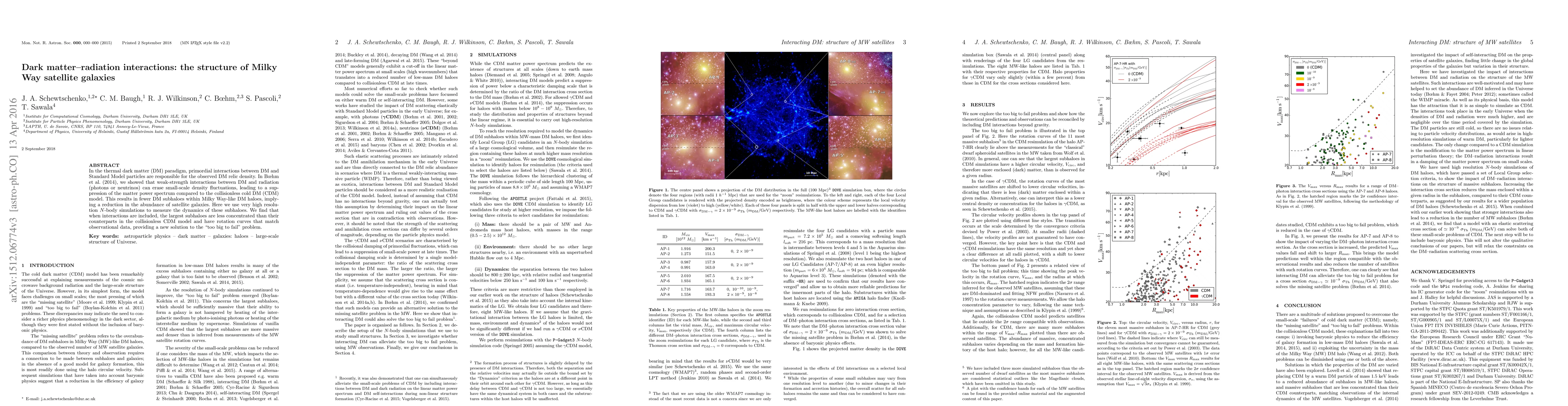 High-resolution simulations show that dark matter-radiation interactions reduce subhalo concentration and match satellite galaxy rotation curves, solving the 'too big to fail' problem in the Milky Way's halo.