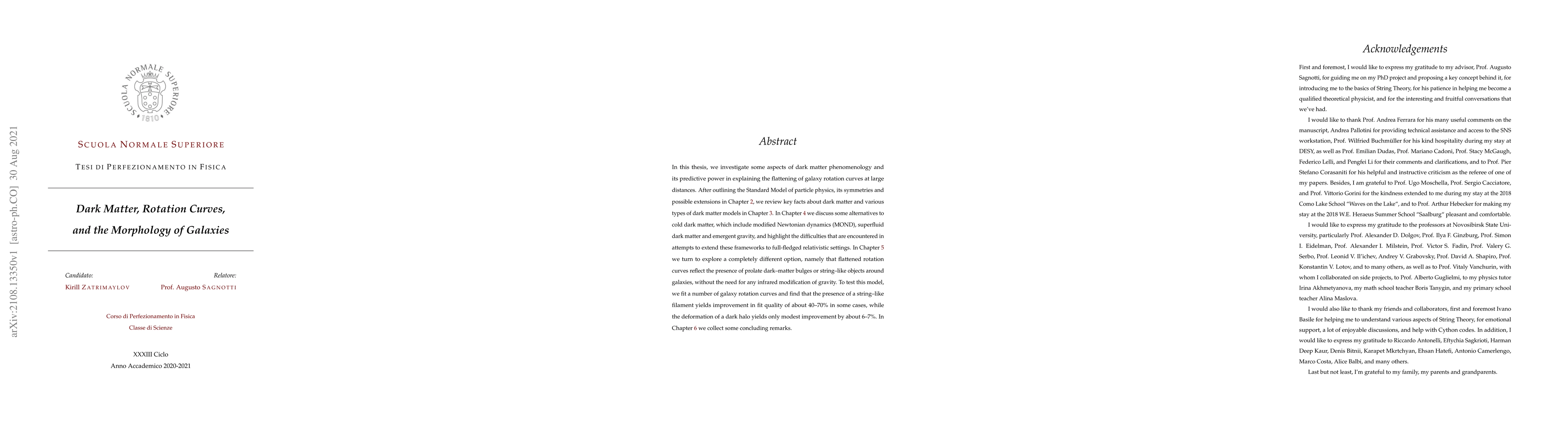 This thesis explores dark matter's role in explaining galaxy rotation curves, comparing cold dark matter models with alternatives like MOND and superfluid dark matter. It proposes a novel model involving string-like filaments around galaxies, which significantly improves fit quality compared to traditional dark halo deformations.