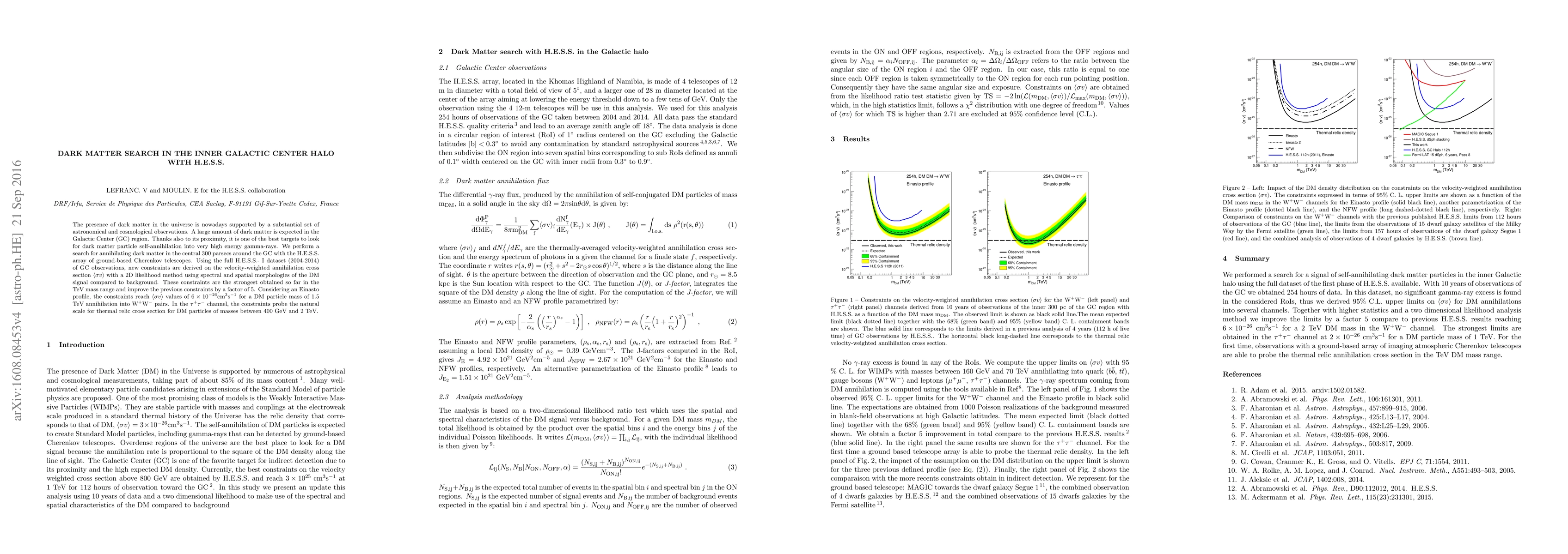 This paper reports on a search for dark matter annihilation signals in the Galactic Center using the H.E.S.S. array of telescopes. The study provides the strongest constraints to date on the velocity-weighted annihilation cross section in the TeV mass range, improving previous limits by a factor of 5.