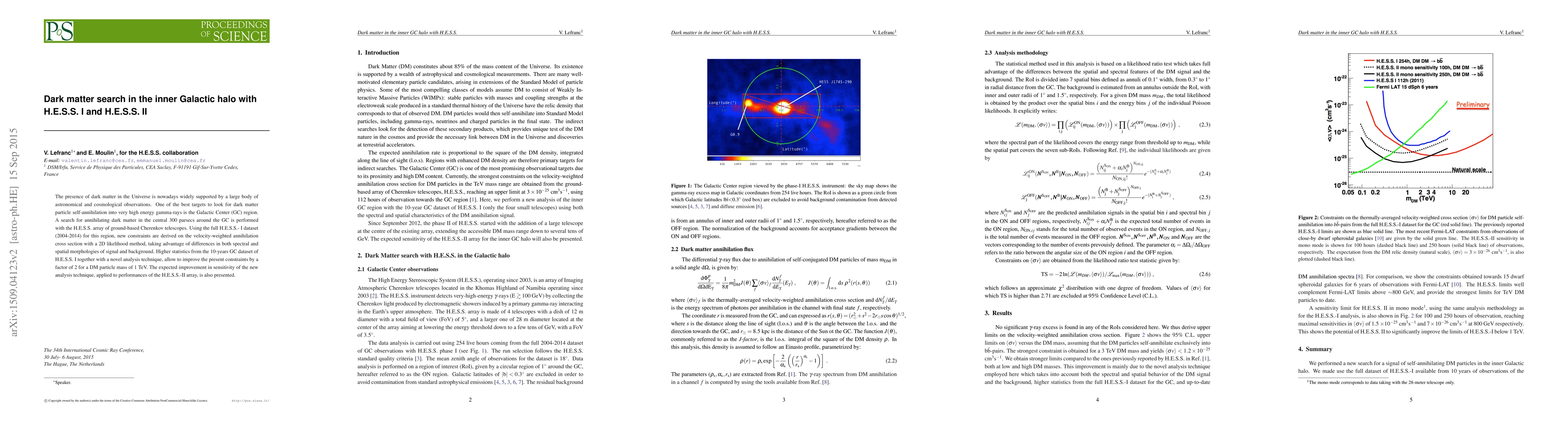 This research uses H.E.S.S. ground-based telescopes to search for dark matter annihilation signals in the Galactic Center region, improving constraints on the annihilation cross section by a factor of 2 for a 1 TeV dark matter particle mass. The study also outlines the expected enhanced sensitivity of the H.E.S.S.-II array.