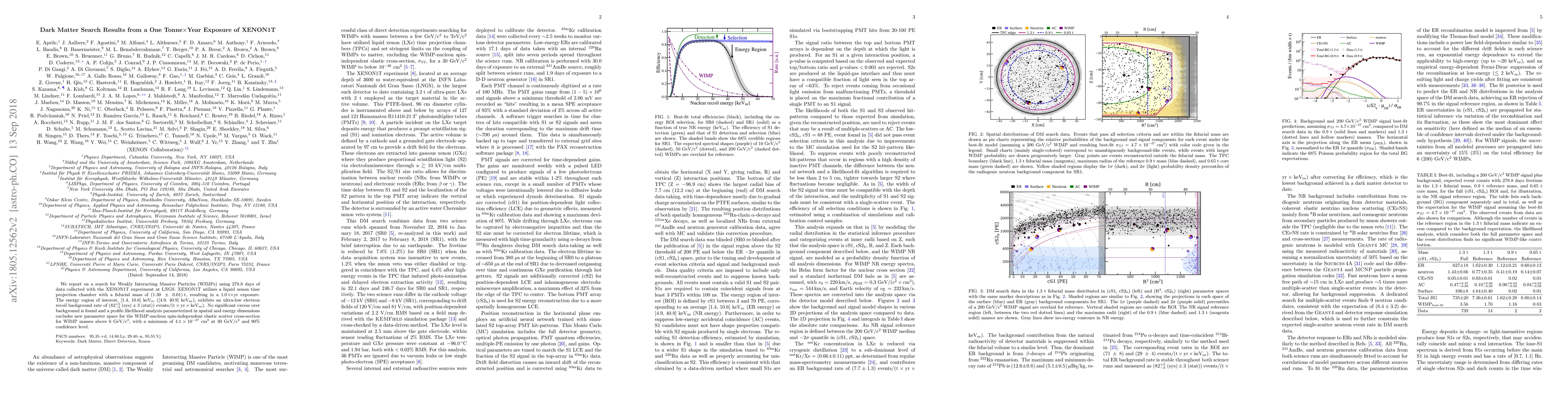 The XENON1T experiment searched for WIMPs with a one-tonne exposure over 278 days, finding no significant excess of signal events, thereby excluding new parameter space for spin-independent elastic scatter cross-sections above 6 GeV/c^2.
