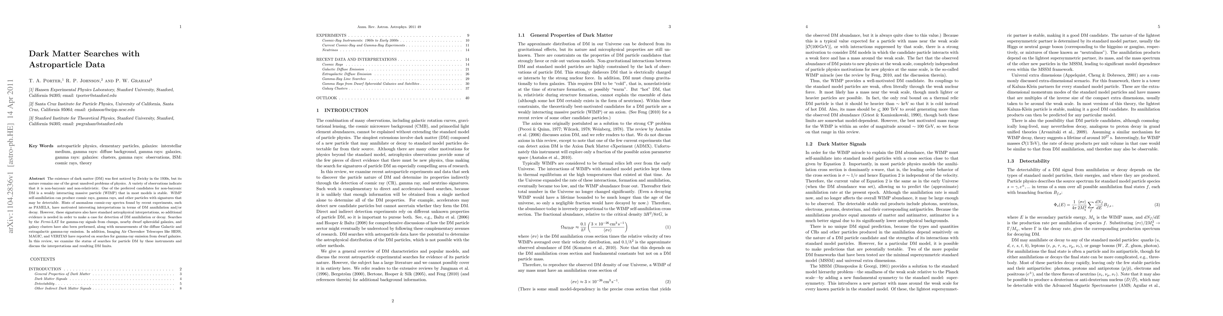 Researchers review existing astroparticle data to detect dark matter, a mysterious substance thought to make up 27% of the universe, through gamma-ray signals and cosmic ray signatures.