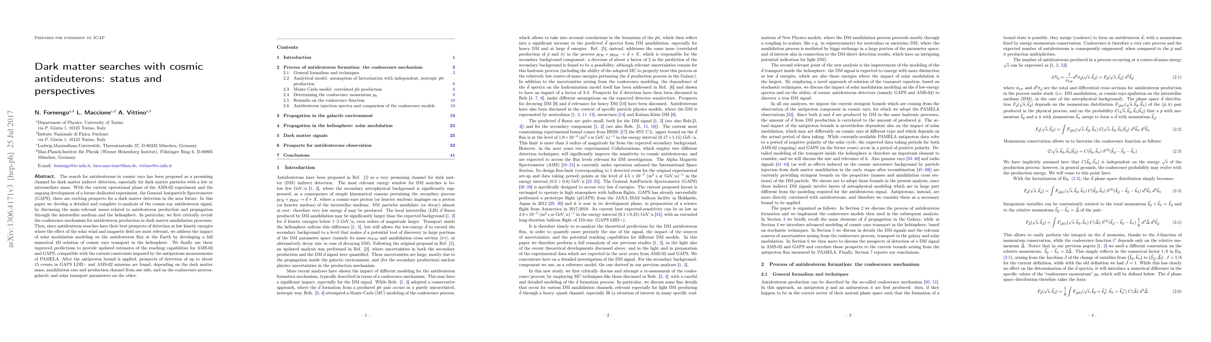 This paper reanalyzes cosmic-ray antideuterons as a potential dark matter detection channel, focusing on production and propagation mechanisms. It updates the prospects for dark matter detection by the AMS-02 and GAPS experiments, finding up to 15 possible detection events, contingent on dark matter parameters and transport models.