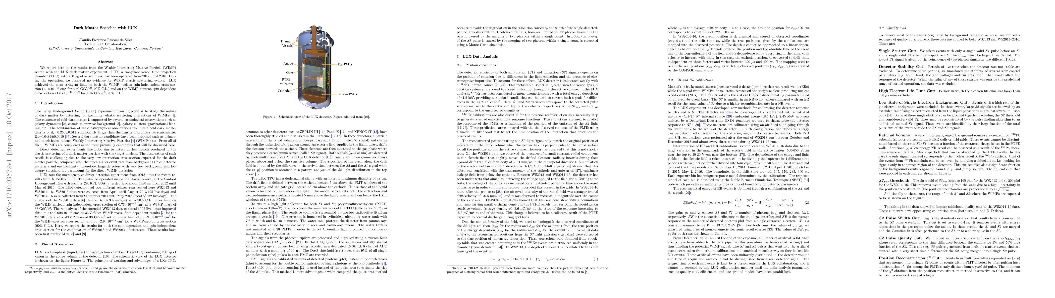 The LUX experiment sets new limits on dark matter searches, finding no evidence for WIMP elastic scattering events with 250 kg of active mass, and achieving the most stringent limit on spin-independent and spin-dependent cross sections.