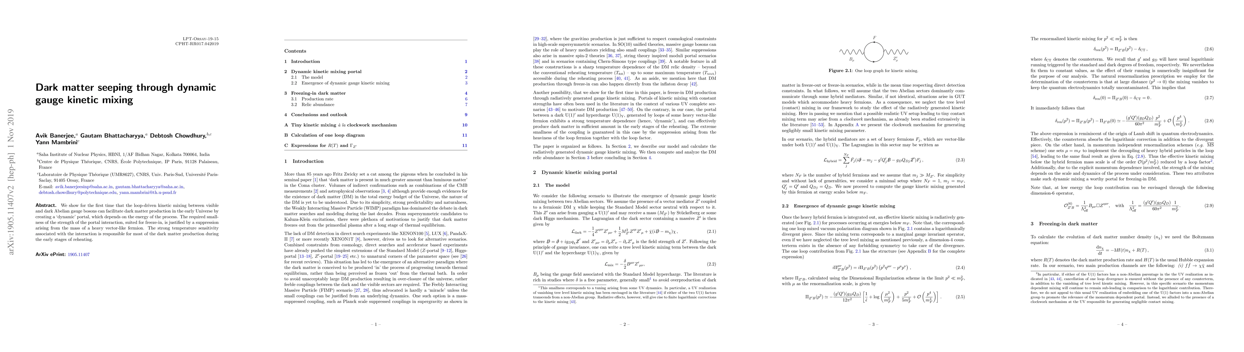 The paper introduces a new mechanism for dark matter production through loop-induced kinetic mixing, providing a detailed analysis of its viability in the early Universe.