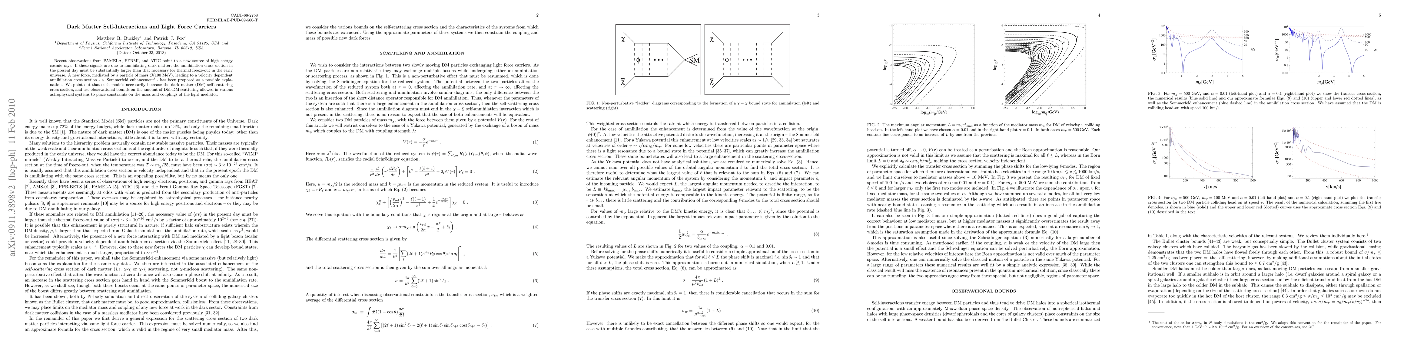 Recent observations from PAMELA, FERMI, and ATIC point to a new source of high energy cosmic rays. If these signals are due to annihilating dark matter, then the annihilation cross section in the present day must be substantially larger than that necessary for thermal freeze-out in the early universe. A new force, mediated by a particle of mass O(100 MeV), leading to a velocity dependent annihilation cross section - a `Sommerfeld enhancement' - has been proposed as a possible explanation. We point out that such models necessarily increase the dark matter (DM) self-scattering cross section, and use observational bounds on the amount of DM-DM scattering allowed in various astrophysical systems to place constraints on the mass and couplings of the light mediator.