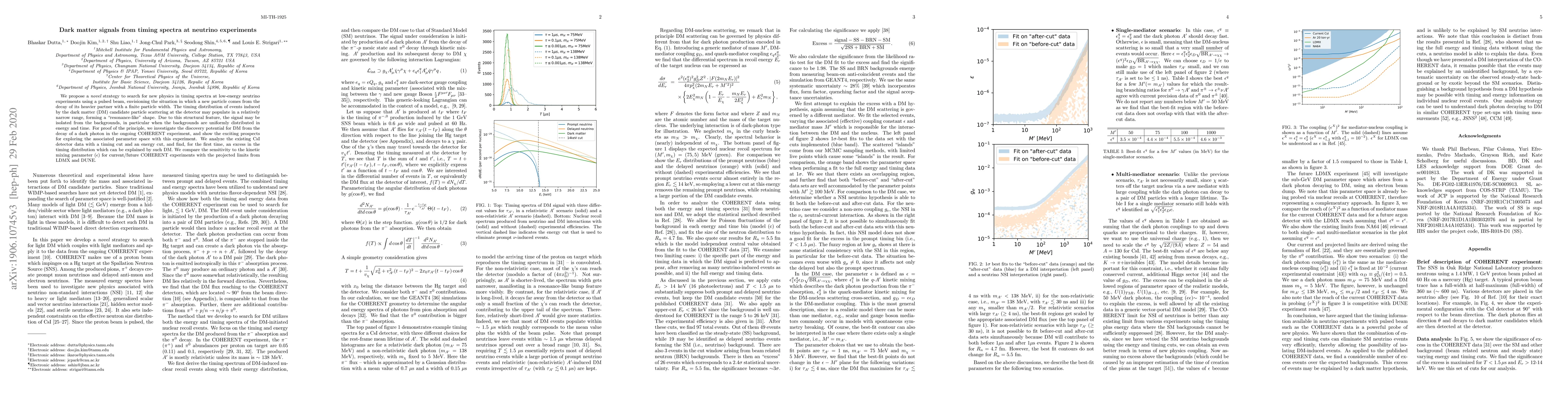 Researchers propose a new method to detect dark matter using timing spectra at neutrino experiments, finding an excess in the timing distribution that could be explained by dark matter interactions. The discovery potential is compared with current and future experiments.
