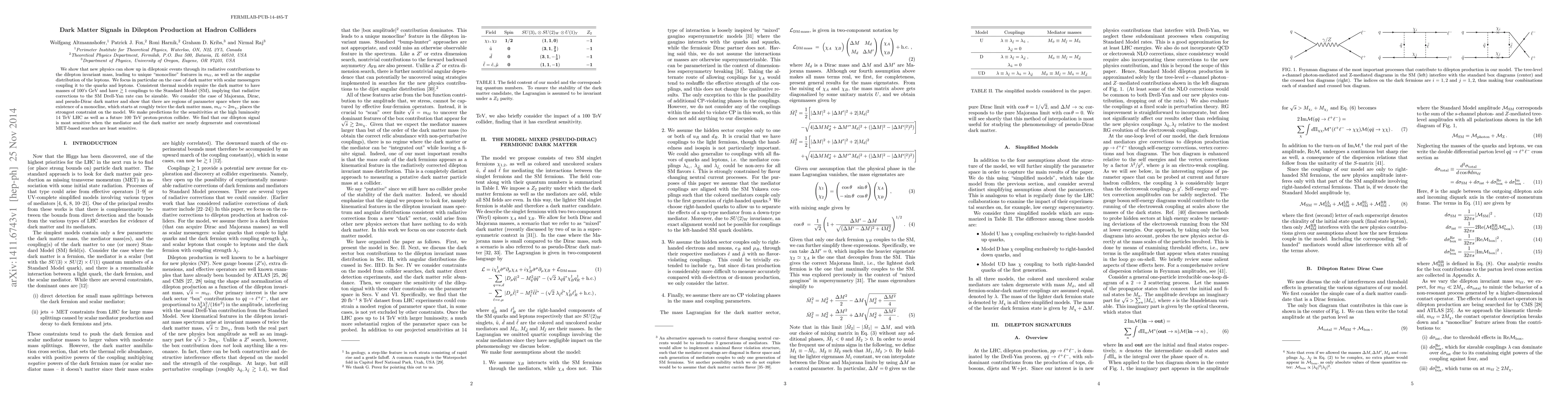 We show that new physics can show up in dileptonic events through its radiative contributions to the dilepton invariant mass, leading to unique "monocline" features in $m_{\ell\ell}$, as well as the angular distribution of the leptons. We focus in particular on the case of dark matter with scalar messengers coupling it to the quarks and leptons. Consistent thermal models require the dark matter to have masses of 100's GeV and have $\gsim 1$ couplings to the Standard Model (SM), implying that radiative corrections to the SM Drell-Yan rate can be sizeable. We consider the case of Majorana, Dirac, and pseudo-Dirac dark matter and show that there are regions of parameter space where the non-existence of a monocline, which starts at roughly twice the dark matter mass, $m_{\ell\ell} \sim 2 m_\chi$, places the strongest constraint on the model. We make predictions for the sensitivities at the high luminosity 14 TeV LHC as well as a future 100 TeV proton-proton collider. We find that our dilepton signal is most sensitive when the mediator and the dark matter are nearly degenerate and conventional MET-based searches are least sensitive.