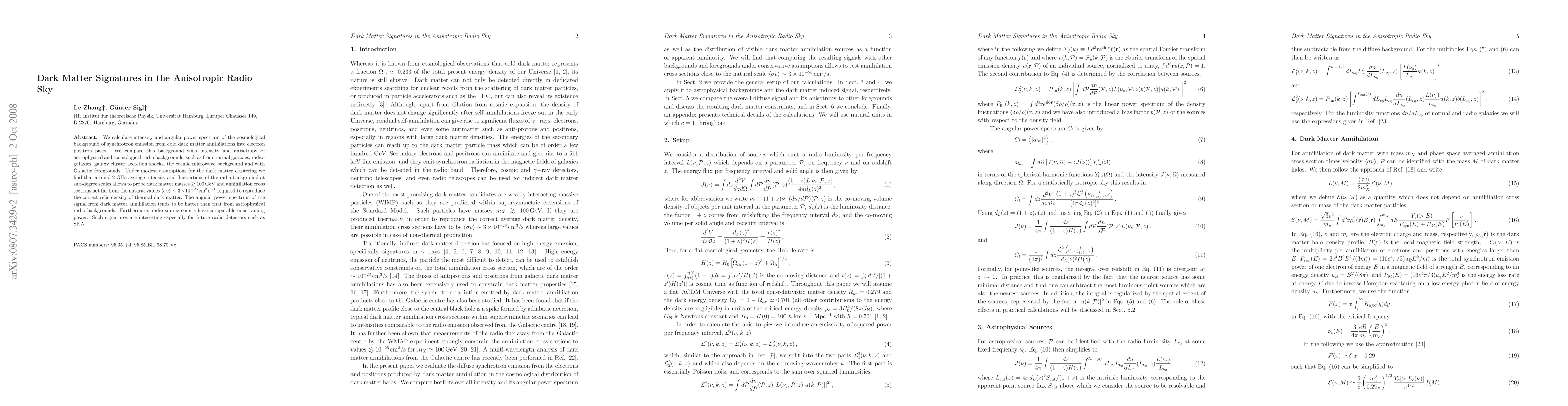 for the dark matter clustering we find that around 2 GHz average intensity and