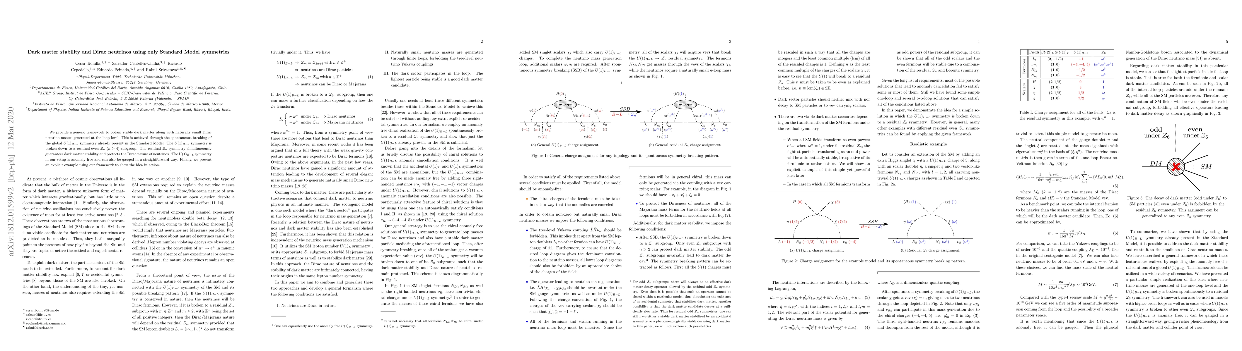 We provide a generic framework to obtain stable dark matter along with naturally small Dirac neutrino masses generated at the loop level. This is achieved through the spontaneous breaking of the global $U(1)_{B-L}$ symmetry already present in Standard Model. The $U(1)_{B-L}$ symmetry is broken down to a residual even $\mathcal{Z}_n$; $n \geq 4$ subgroup. The residual $\mathcal{Z}_n$ symmetry simultaneously guarantees dark matter stability and protects the Dirac nature of neutrinos. The $U(1)_{B-L}$ symmetry in our setup is anomaly free and can also be gauged in a straightforward way. Finally, we present an explicit example using our framework to show the idea in action.