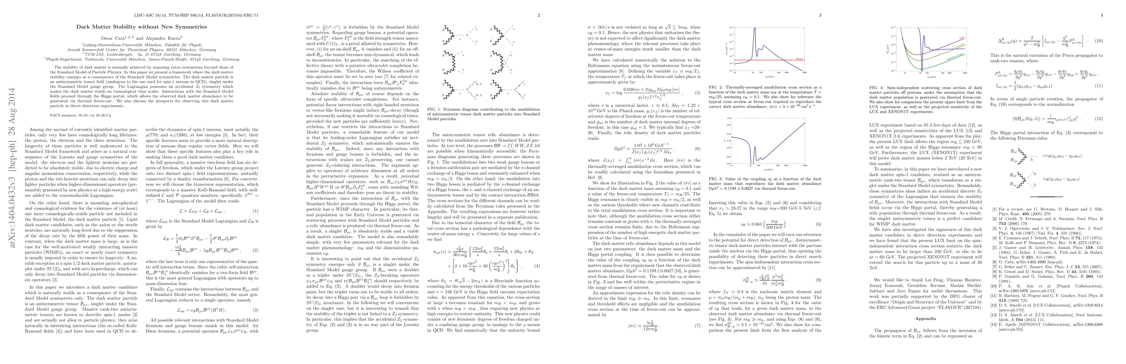 The stability of dark matter is normally achieved by imposing extra symmetries beyond those of the Standard Model of Particle Physics. In this paper we present a framework where the dark matter stability emerges as a consequence of the Standard Model symmetries. The dark matter particle is an antisymmetric tensor field (analogous to the one used for spin-1 mesons in QCD), singlet under the Standard Model gauge group. The Lagrangian possesses an accidental $Z_2$ symmetry which makes the dark matter stable on cosmological time scales. Interactions with the Standard Model fields proceed through the Higgs portal, which allows the observed dark matter abundance to be generated via thermal freeze-out. We also discuss the prospects for observing this dark matter particle in direct detection experiments.