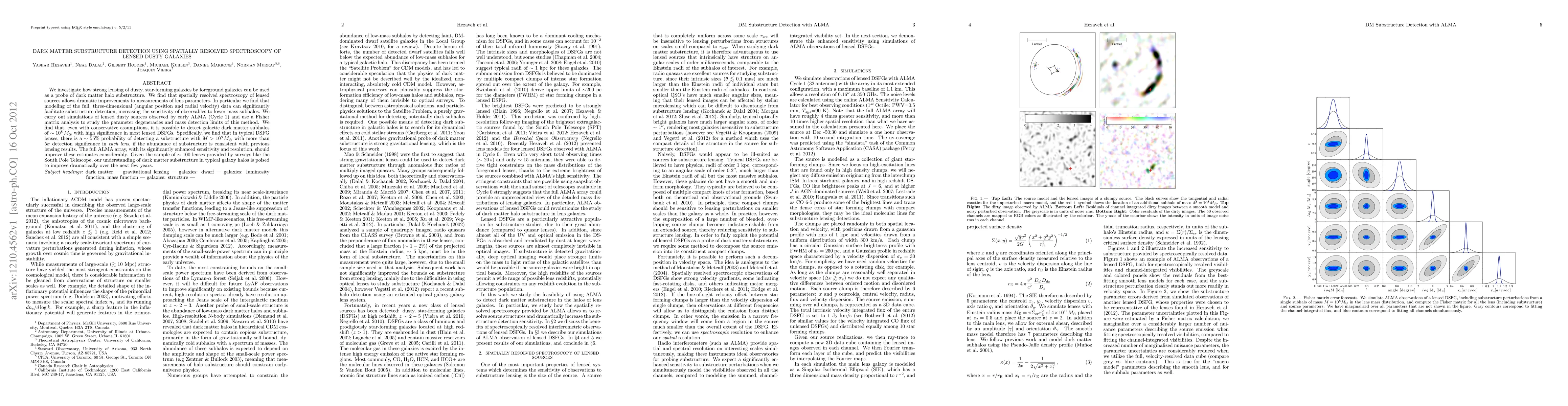 This paper explores the use of strong lensing of dusty, star-forming galaxies to detect dark matter substructure. Spatially resolved spectroscopy of lensed galaxies enhances measurements of lens parameters and improves the detection of subhalos, potentially revealing subhalos of ~10^8 M_{\odot} with high significance.