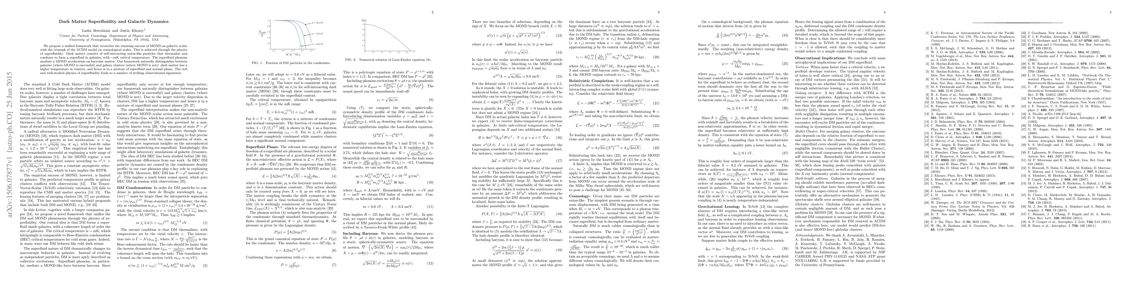 We propose a unified framework that reconciles the stunning success of MOND on galactic scales with the triumph of the LambdaCDM model on cosmological scales. This is achieved through the physics of superfluidity. Dark matter consists of self-interacting axion-like particles that thermalize and condense to form a superfluid in galaxies, with ~mK critical temperature. The superfluid phonons mediate a MOND acceleration on baryonic matter. Our framework naturally distinguishes between galaxies (where MOND is successful) and galaxy clusters (where MOND is not): dark matter has a higher temperature in clusters, and hence is in a mixture of superfluid and normal phase. The rich and well-studied physics of superfluidity leads to a number of striking observational signatures.