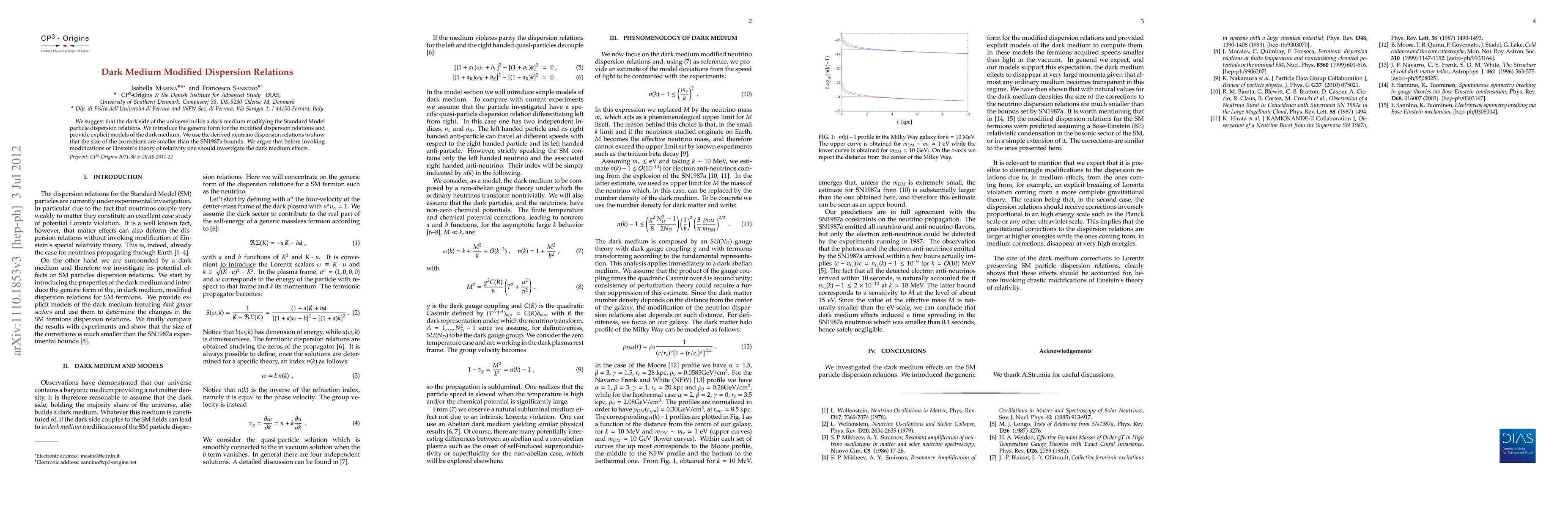 This paper proposes that dark matter creates a dark medium altering the dispersion relations of Standard Model particles. It presents a general form for these modified relations and demonstrates that the resulting corrections are within acceptable bounds, suggesting that dark medium effects should be considered before altering relativity.