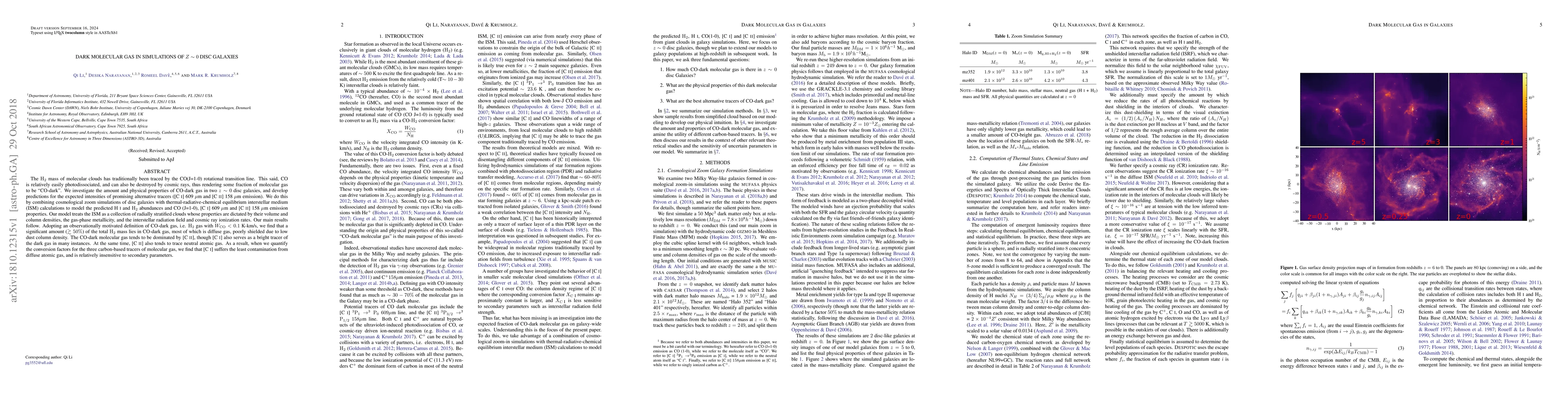 The $\rm H_2$ mass of molecular clouds has traditionally been traced by the CO(J=1-0) rotational transition line. This said, CO is relatively easily photodissociated, and can also be destroyed by cosmic rays, thus rendering some fraction of molecular gas to be "CO-dark". We investigate the amount and physical properties of CO-dark gas in two $z \sim 0$ disc galaxies, and develop predictions for the expected intensities of promising alternative tracers ([CI 609 $\mu$m and [CII] 158 $\mu$m emission). We do this by combining cosmological zoom simulations of disc galaxies with thermal-radiative-chemical equilibrium interstellar medium (ISM) calculations to model the predicted H~\textsc{i} and $\rm H_2$ abundances and CO(J=1-0), [CI] 609 $\mu$m and [CII] 158 $\mu$m emission properties. Our model treats the ISM as a collection of radially stratified clouds whose properties are dictated by their volume and column densities, the gas-phase metallicity, and the interstellar radiation field and cosmic ray ionization rates. Our main results follow. Adopting an observationally motivated definition of CO-dark gas, i.e. $\rm H_2$ gas with $W_{\rm CO} < 0.1 $ K-km/s, we find that a significant amount ($> 50\%$) of the total $\rm H_2$ mass lies in CO-dark gas, most of which is diffuse gas, poorly shielded due to low dust column density. The CO-dark molecular gas tends to be dominated by [CII], though [CI] also serves as a bright tracer of the dark gas in many instances. At the same time, [CII] also tends to trace neutral atomic gas. As a result, when we quantify the conversion factors for the three carbon-based tracers of molecular gas, we find that [CI] suffers the least contamination from diffuse atomic gas, and is relatively insensitive to secondary parameters.