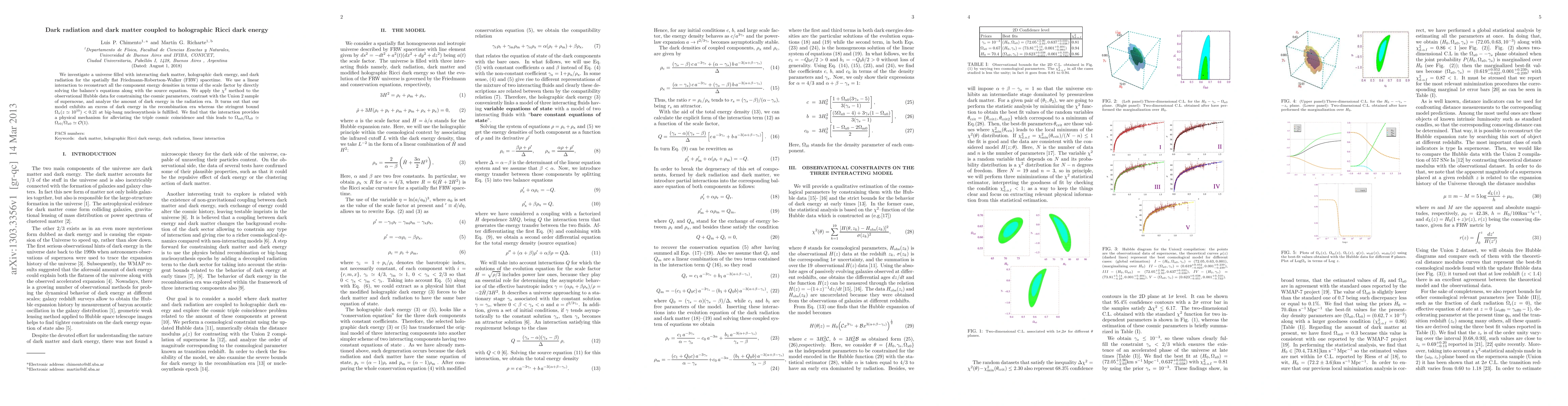 We investigate a universe filled with interacting dark matter, holographic dark energy, and dark radiation for the spatially flat Friedmann-Robertson-Walker (FRW) spacetime. We use a linear interaction to reconstruct all the component energy densities in terms of the scale factor by directly solving the balance's equations along with the source equation. We apply the $\chi^{2}$ method to the observational Hubble data for constraining the cosmic parameters, contrast with the Union 2 sample of supernovae, and analyze the amount of dark energy in the radiation era. It turns out that our model exhibits an excess of dark energy in the recombination era whereas the stringent bound $\Omega_{\rm x}(z\simeq 10^{10})<0.21$ at big-bang nucleosynthesis is fulfilled. We find that the interaction provides a physical mechanism for alleviating the triple cosmic coincidence and this leads to $\Omega_{\rm m0}/\Omega_{\rm x0} \simeq \Omega_{\rm r0}/\Omega_{\rm x0} \simeq {\cal O}(1)$.