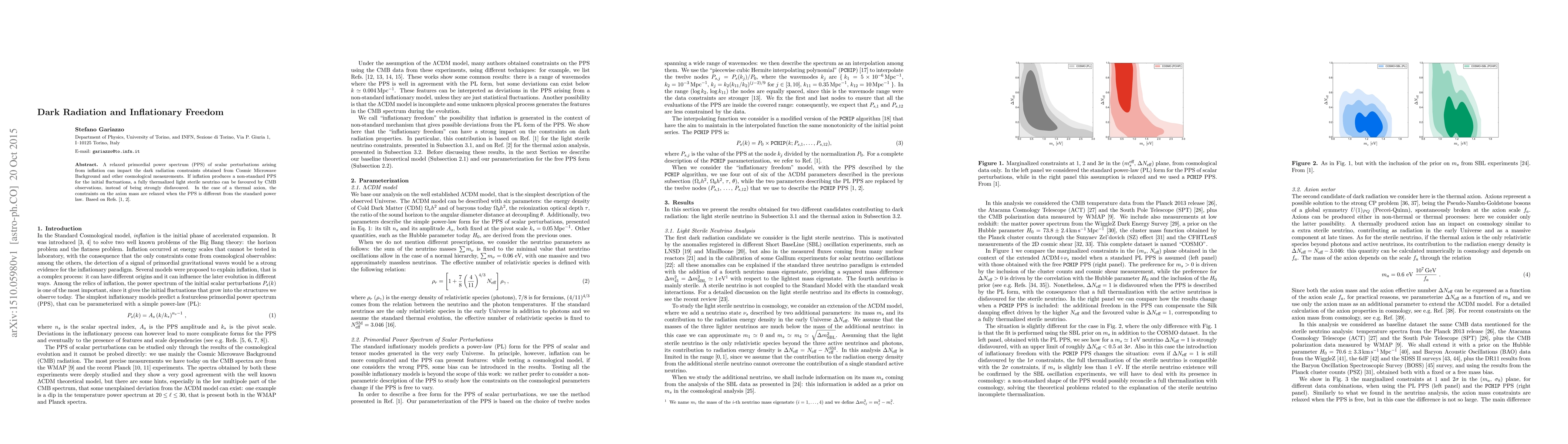A relaxed primordial power spectrum (PPS) of scalar perturbations arising from inflation can impact the dark radiation constraints obtained from Cosmic Microwave Background and other cosmological measurements. If inflation produces a non-standard PPS for the initial fluctuations, a fully thermalized light sterile neutrino can be favoured by CMB observations, instead of being strongly disfavoured. In the case of a thermal axion, the constraints on the axion mass are relaxed when the PPS is different from the standard power law.