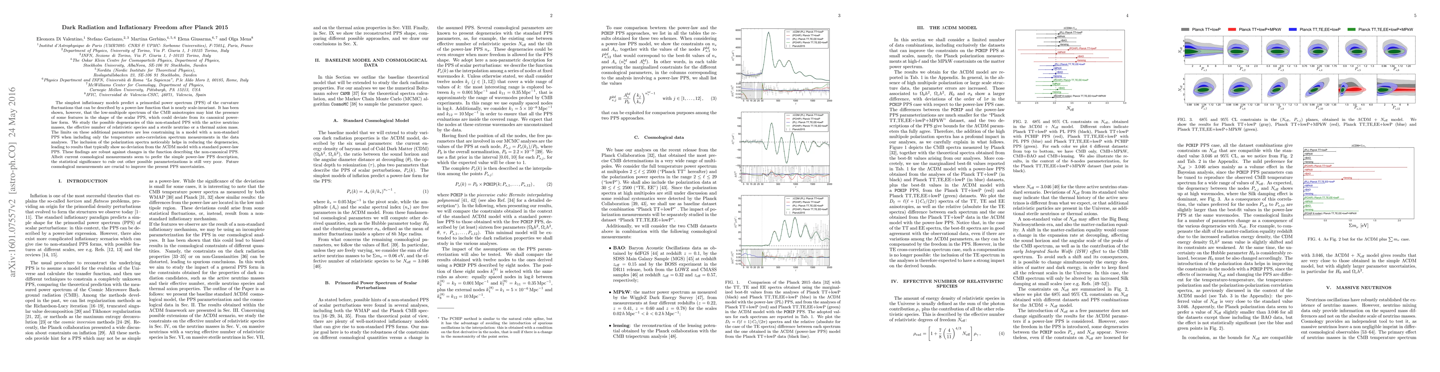The simplest inflationary models predict a primordial power spectrum (PPS) of the curvature fluctuations that can be described by a power-law function that is nearly scale-invariant. It has been shown, however, that the low-multipole spectrum of the CMB anisotropies may hint the presence of some features in the shape of the scalar PPS, which could deviate from its canonical power-law form. We study the possible degeneracies of this non-standard PPS with the neutrino anisotropies, the neutrino masses, the effective number of relativistic species and a sterile neutrino or a thermal axion mass. The limits on these additional parameters are less constraining in a model with a non-standard PPS when only including the temperature auto-correlation spectrum measurements in the data analyses. The inclusion of the polarization spectra noticeably helps in reducing the degeneracies, leading to results that typically show no deviation from the $\Lambda$CDM model with a standard power-law PPS.