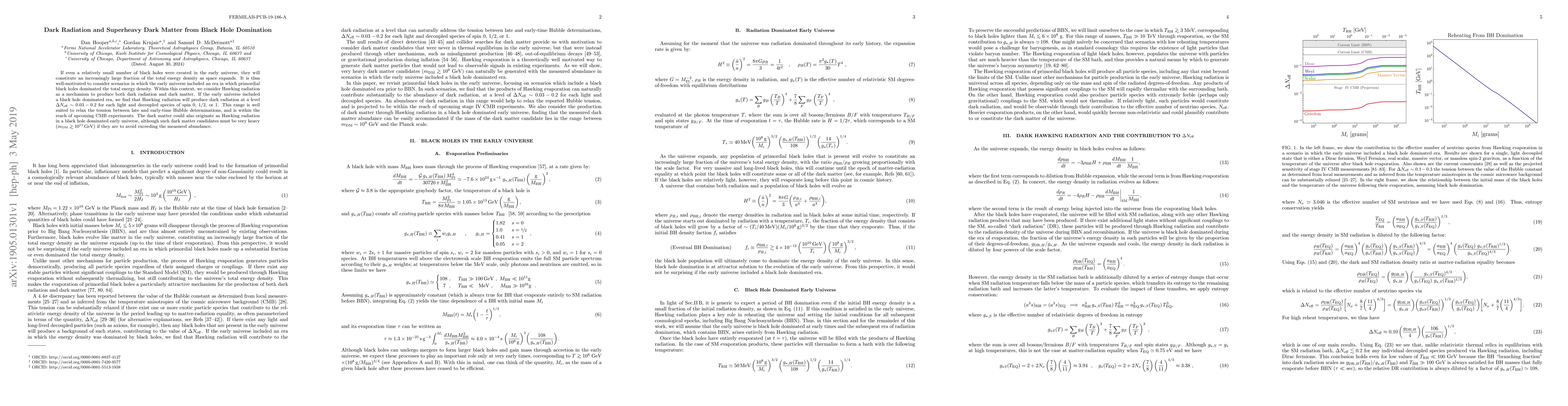 If even a relatively small number of black holes were created in the early universe, they will constitute an increasingly large fraction of the total energy density as space expands. It is thus well-motivated to consider scenarios in which the early universe included an era in which primordial black holes dominated the total energy density. Within this context, we consider Hawking radiation as a mechanism to produce both dark radiation and dark matter. If the early universe included a black hole dominated era, we find that Hawking radiation will produce dark radiation at a level $\Delta N_{\rm eff} \sim 0.03-0.2$ for each light and decoupled species of spin 0, 1/2, or 1. This range is well suited to relax the tension between late and early-time Hubble determinations, and is within the reach of upcoming CMB experiments. The dark matter could also originate as Hawking radiation in a black hole dominated early universe, although such dark matter candidates must be very heavy ($m_{\rm DM} >10^{11}$ GeV) if they are to avoid exceeding the measured abundance.