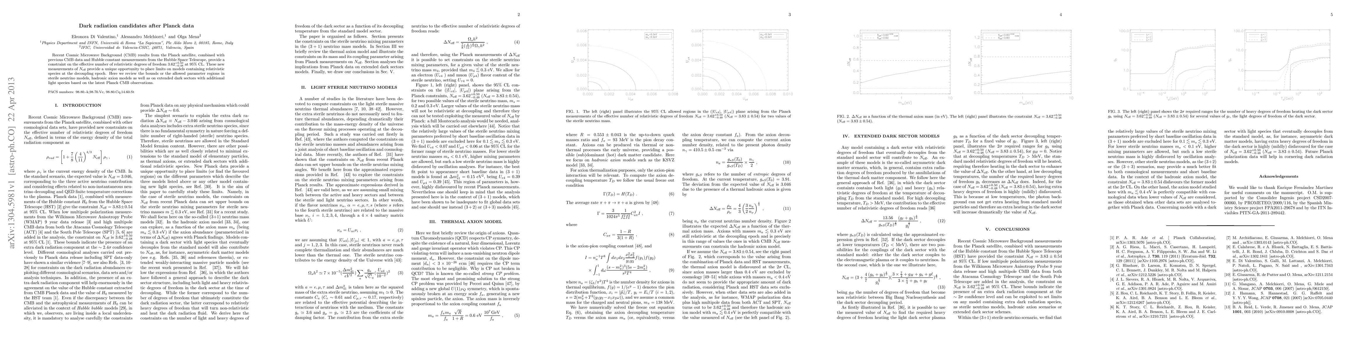 Recent Cosmic Microwave Background (CMB) results from the Planck satellite, combined with previous CMB data and Hubble constant measurements from the Hubble Space Telescope, provide a constraint on the effective number of relativistic degrees of freedom of Neff=3.62^{+0.50}_{-0.48} at 95% CL. These new measurements provide a unique opportunity to place limits on models containing relativistic species at the decoupling epoch. Here we review the bounds or the allowed parameter regions in sterile neutrino models, hadronic axion models as well as on extended dark sectors with additional light species based on the latest Planck CMB observations.