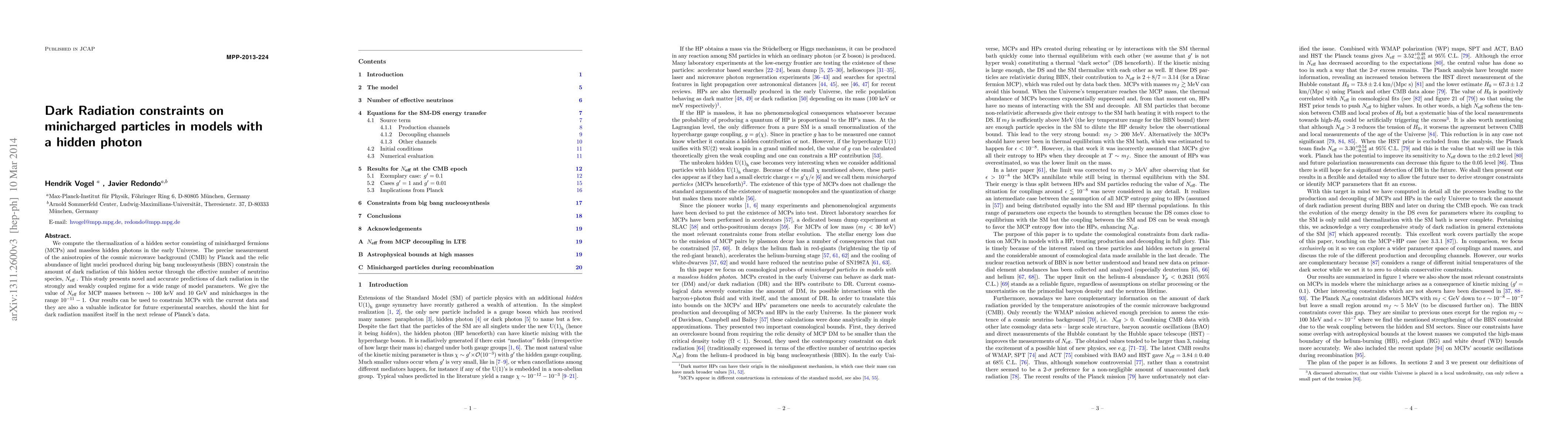 Researchers studied minicharged particles in models with a hidden photon, finding constraints on dark radiation that can help constrain these particles using current data or future experiments.