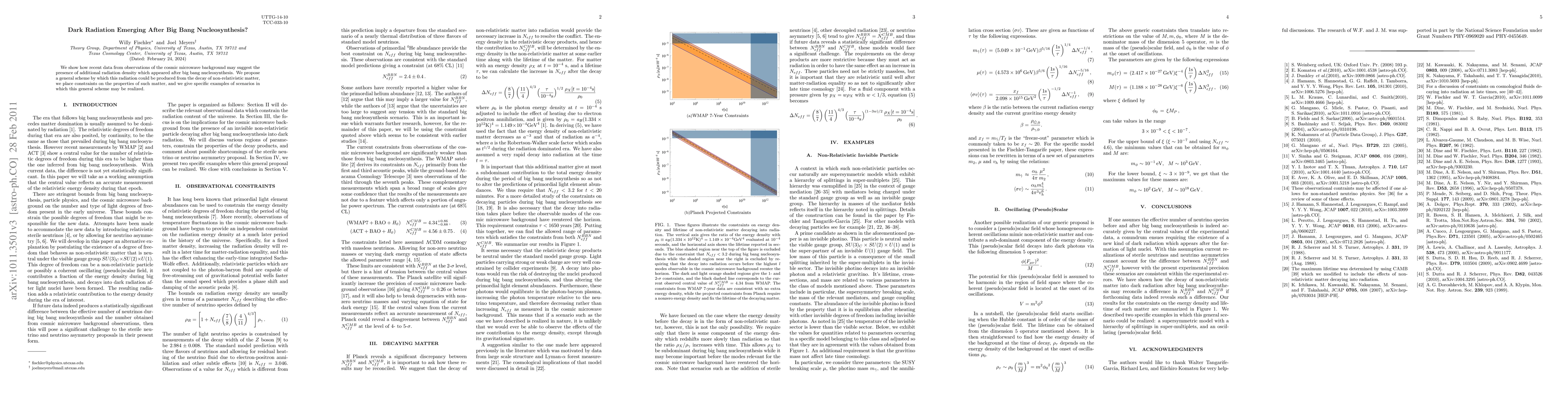 We show how recent data from observations of the cosmic microwave background may suggest the presence of additional radiation density which appeared after big bang nucleosynthesis. We propose a general scheme by which this radiation could be produced from the decay of non-relativistic matter, we place constraints on the properties of such matter, and we give specific examples of scenarios in which this general scheme may be realized.