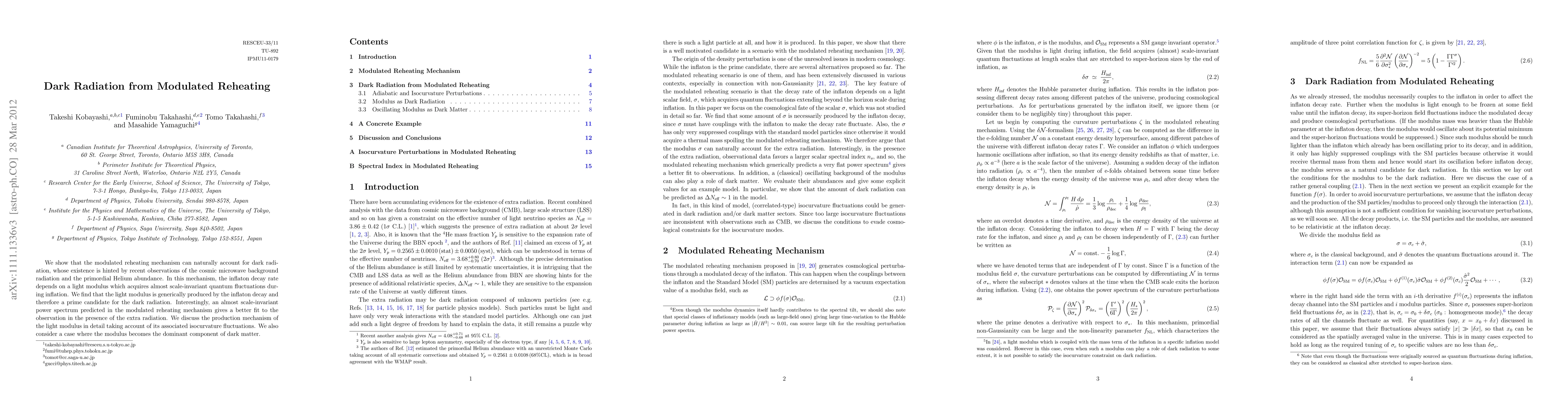 This paper proposes that modulated reheating can naturally generate dark radiation, supported by recent cosmic microwave background and primordial Helium observations. It suggests that a light modulus, produced by inflaton decay, is a prime candidate for this dark radiation, providing a better fit to observations with its almost scale-invariant power spectrum.