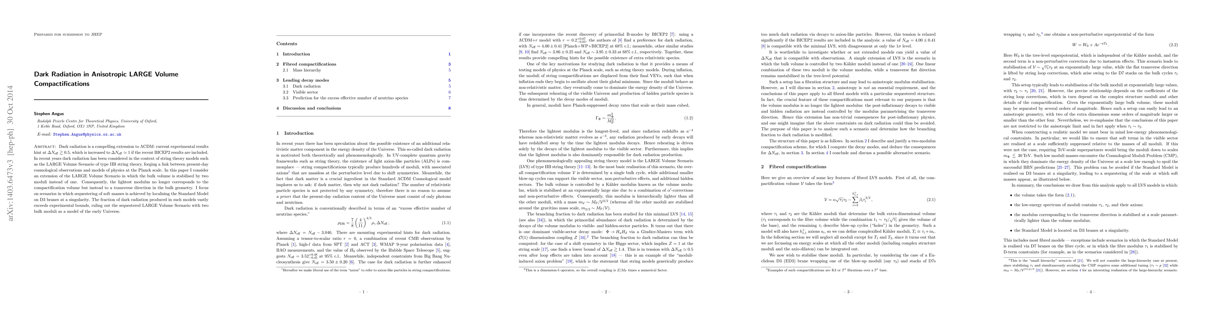 This paper explores dark radiation in anisotropic LARGE Volume Scenarios with two moduli, linking cosmological observations to string theory. It finds that such models overproduce dark radiation, exceeding experimental limits and thus ruling out this configuration as a viable early Universe model.