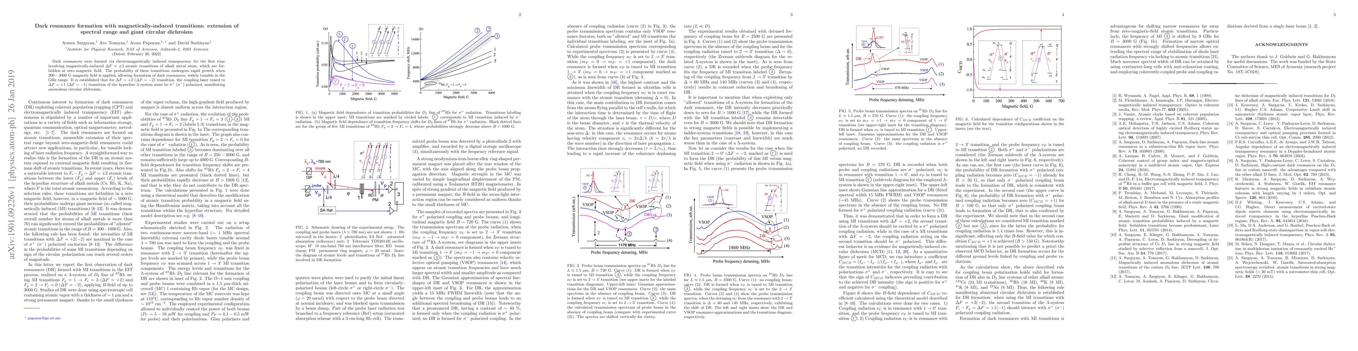 This paper reports the formation of dark resonances using magnetically-induced $\Delta F = \pm2$ transitions in alkali metal atoms, previously forbidden at zero magnetic field. The application of a magnetic field enhances these transitions, enabling the formation of widely tunable dark resonances in the GHz range and revealing giant circular dichroism effects.