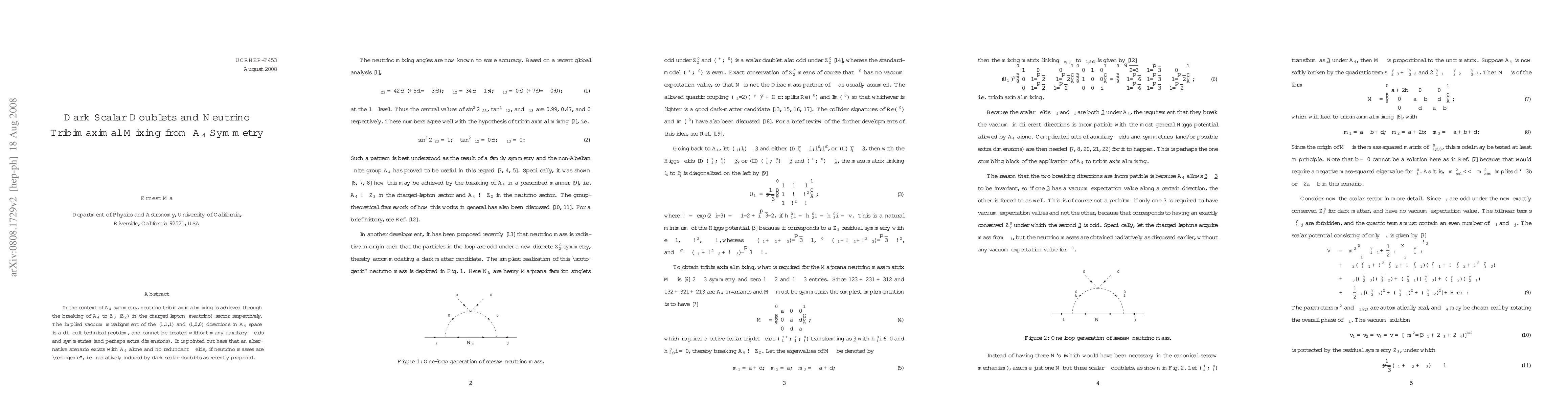 In the context of A_4 symmetry, neutrino tribimaximal mixing is achieved through the breaking of A_4 to Z_3 (Z_2) in the charged-lepton (neutrino) sector respectively. The implied vacuum misalignment of the (1,1,1) and (1,0,0) directions in A_4 space is a difficult technical problem, and cannot be treated without many auxiliary fields and symmetries (and perhaps extra dimensions). It is pointed out here that an alternative scenario exists with A_4 alone and no redundant fields, if neutrino masses are "scotogenic", i.e. radiatively induced by dark scalar doublets as recently proposed.
