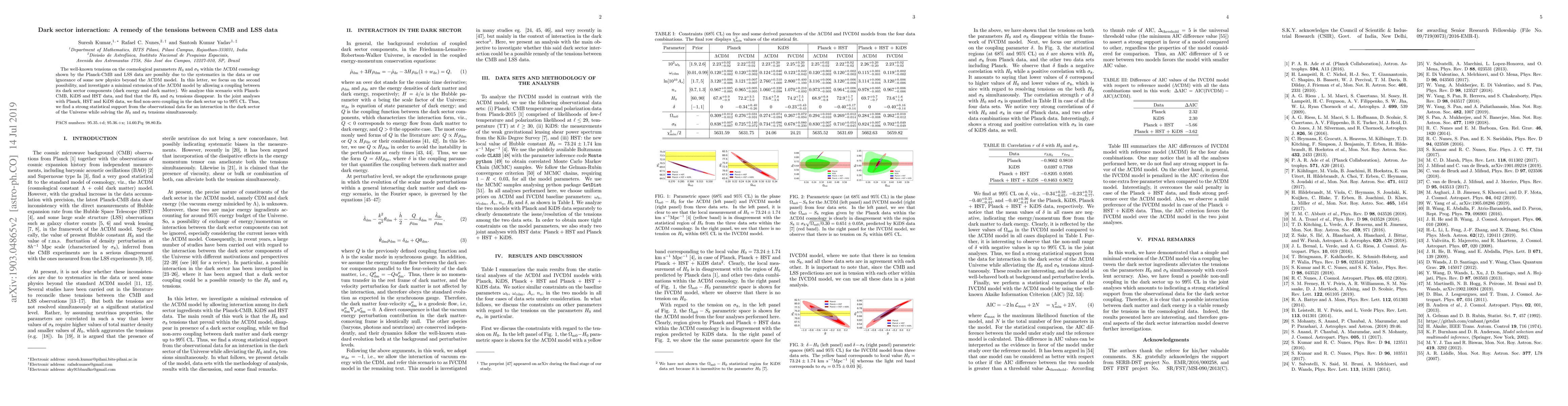This paper explores a minimal extension of the $\Lambda$CDM model by introducing a coupling between dark energy and dark matter, finding that this interaction resolves tensions between $H_0$ and $\sigma_8$ parameters derived from Planck-CMB and LSS data, with statistical support up to 99% confidence level.