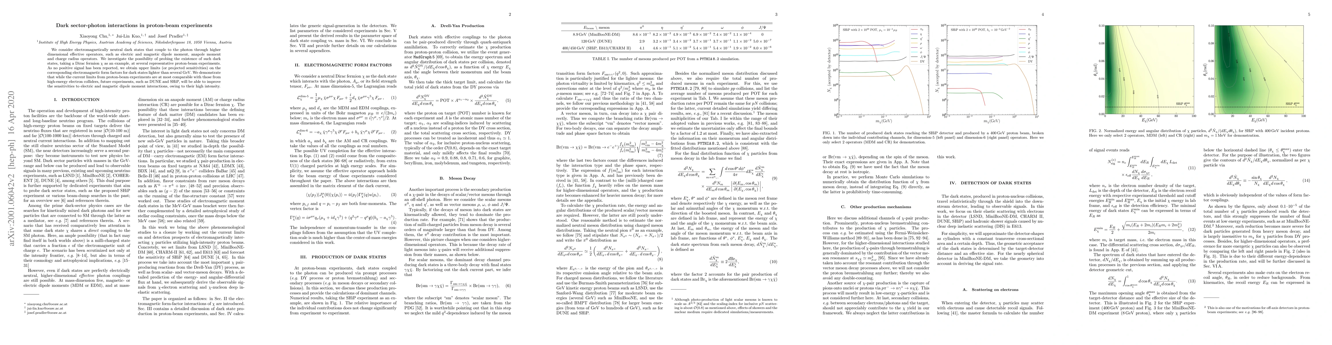 We consider electromagnetically neutral dark states that couple to the photon through higher dimensional effective operators, such as electric and magnetic dipole moment, anapole moment and charge radius operators. We investigate the possibility of probing the existence of such dark states, taking a Dirac fermion $\chi$ as an example, at several representative proton-beam experiments. As no positive signal has been reported, we obtain upper limits (or projected sensitivities) on the corresponding electromagnetic form factors for dark states lighter than several GeV. We demonstrate that while the current limits from proton-beam experiments are at most comparable with those from high-energy electron colliders, future experiments, such as DUNE and SHiP, will be able to improve the sensitivities to electric and magnetic dipole moment interactions, owing to their high intensity.