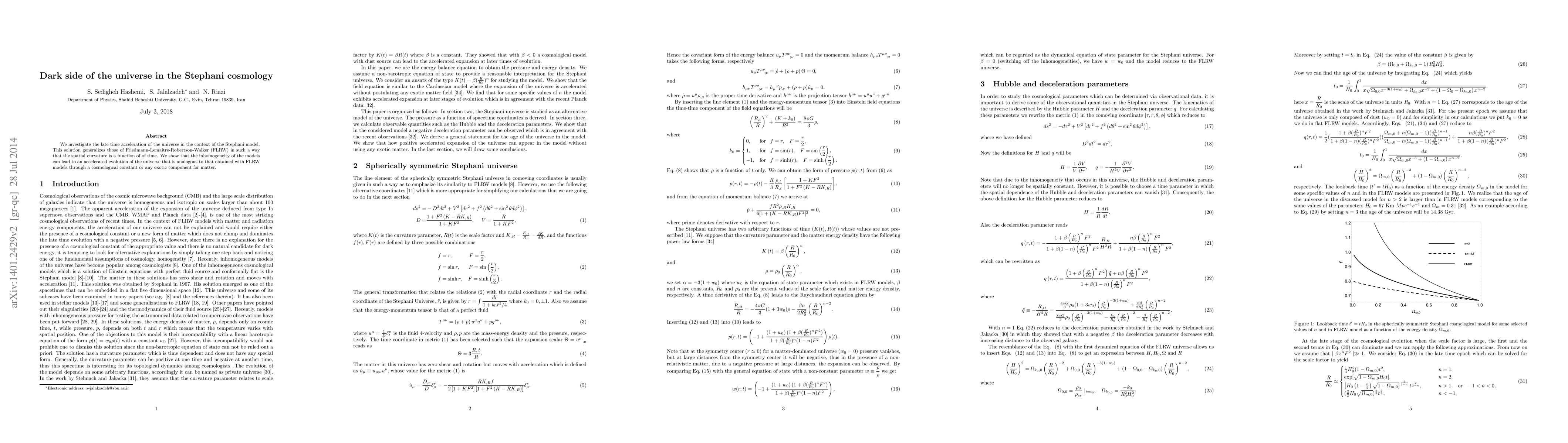 This paper explores the late-time acceleration of the universe using the Stephani cosmology model, demonstrating that its inhomogeneous nature can produce accelerated expansion similar to that explained by FLRW models with a cosmological constant or exotic matter.