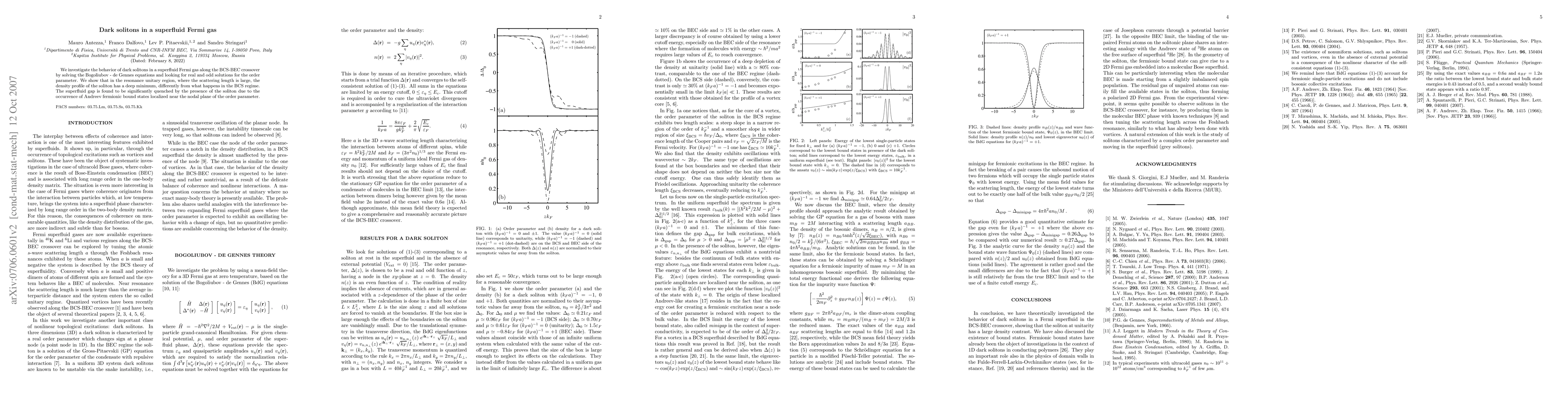 Researchers studied dark solitons in a superfluid Fermi gas near the BCS-BEC crossover point, finding that their presence quenches the superfluid gap significantly, creating a deep density minimum in the soliton.