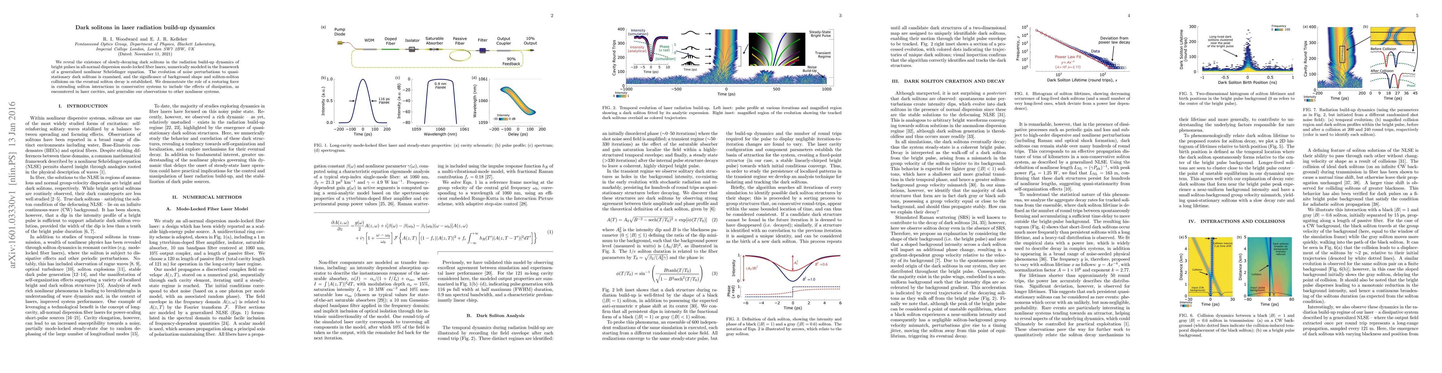 We reveal the existence of slowly-decaying dark solitons in the radiation build-up dynamics of bright pulses in all-normal dispersion mode-locked fiber lasers, numerically modeled in the framework of a generalized nonlinear Schr\"odinger equation. The evolution of noise perturbations to quasi-stationary dark solitons is examined, and the significance of background shape and soliton-soliton collisions on the eventual soliton decay is established. We demonstrate the role of a restoring force in extending soliton interactions in conservative systems to include the effects of dissipation, as encountered in laser cavities, and generalize our observations to other nonlinear systems.