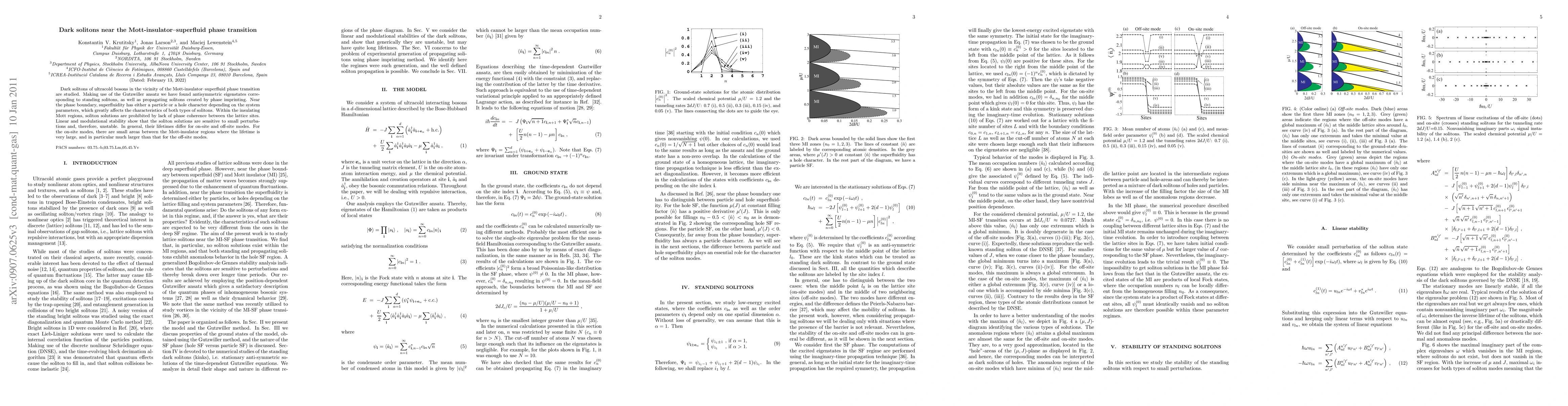 Researchers discovered dark solitons near a phase transition in ultracold bosons between insulator and superfluid states, which are unstable due to sensitivity to small perturbations and have varying lifetimes depending on their location.