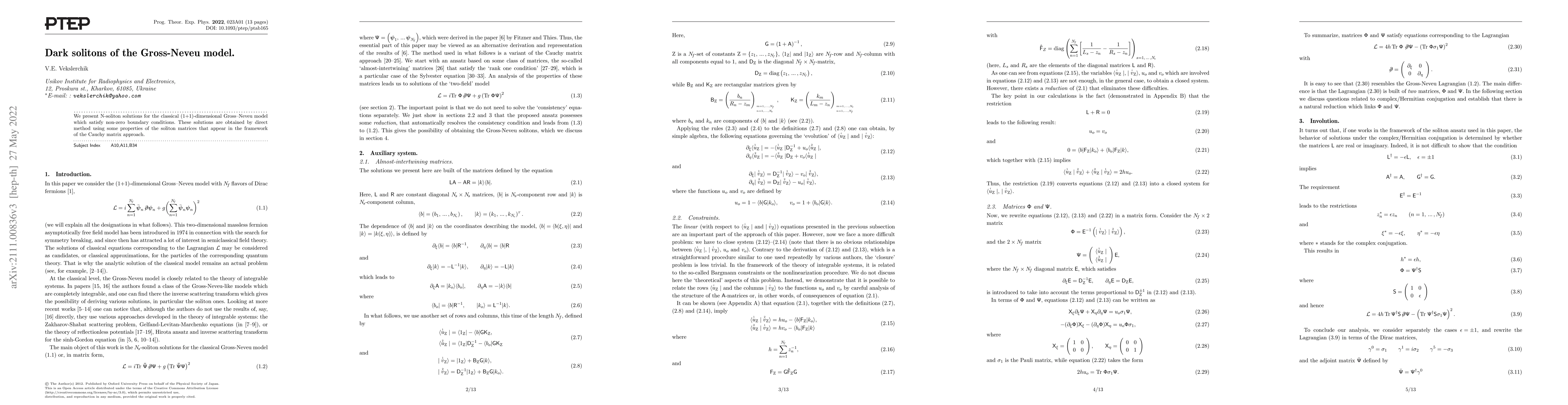 We present N-soliton solutions for the classical (1+1)-dimensional Gross-Neveu model which satisfy non-zero boundary conditions. These solutions are obtained by direct method using some properties of the soliton matrices that appear in the framework of the Cauchy matrix approach.