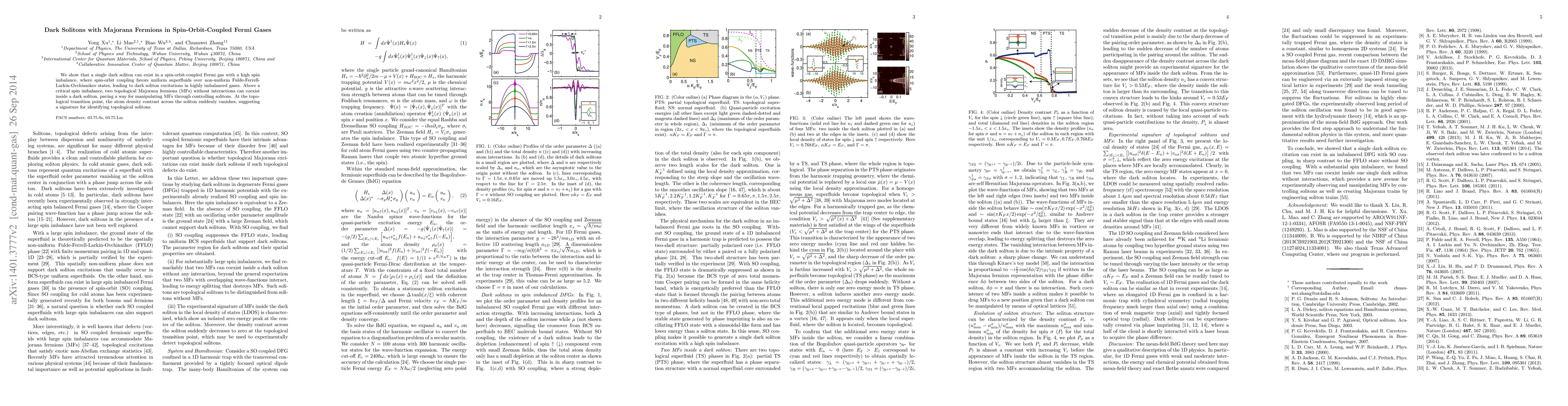 This paper demonstrates the existence of dark solitons in spin-orbit-coupled Fermi gases with high spin imbalance, revealing that two topological Majorana fermions can coexist within a dark soliton above a critical imbalance. The study highlights the potential for manipulating Majorana fermions via soliton control and identifies the vanishing atom density contrast as a signature for topological solitons.