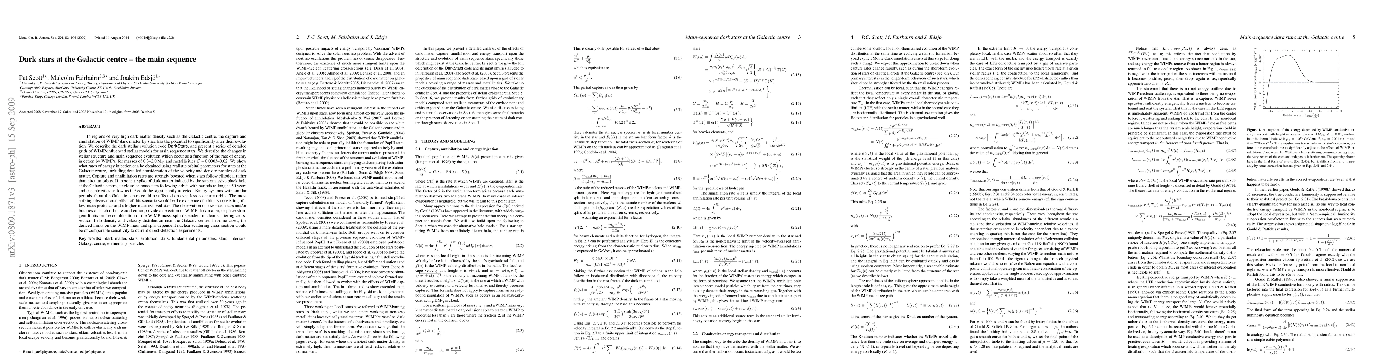 This paper explores how dark matter interactions can significantly alter the evolution of main sequence stars in the Galactic centre, using a code called DarkStars. It finds that stars on elliptical orbits experience enhanced WIMP capture and annihilation, potentially affecting stars as low as 0.3 solar masses, and could provide evidence for or place limits on WIMP properties.