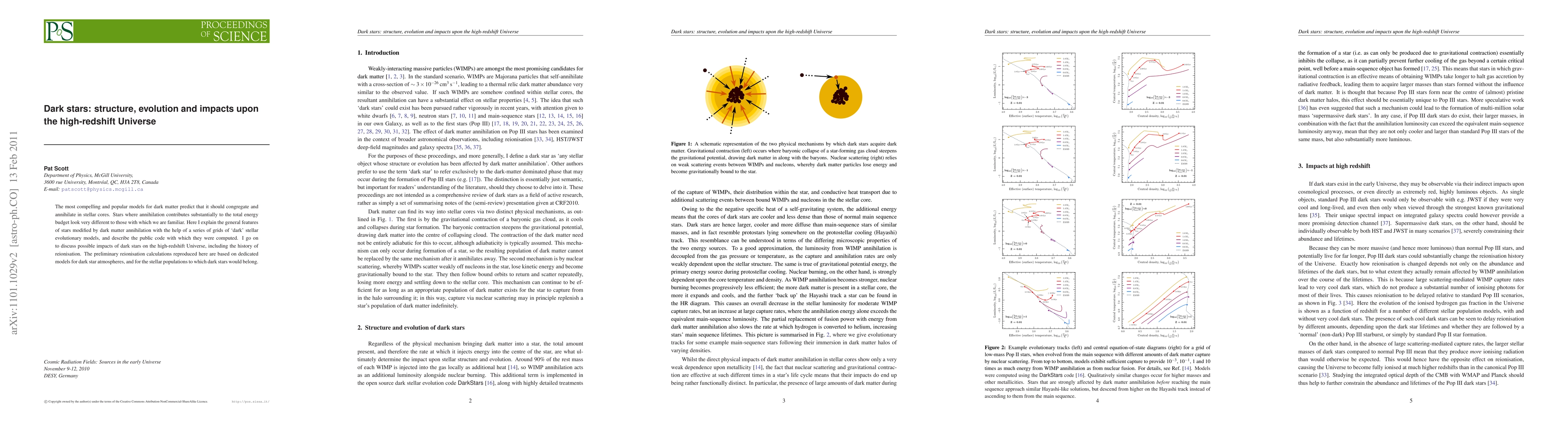 The most compelling and popular models for dark matter predict that it should congregate and annihilate in stellar cores. Stars where annihilation contributes substantially to the total energy budget look very different to those with which we are familiar. Here I explain the general features of stars modified by dark matter annihilation with the help of a series of grids of 'dark' stellar evolutionary models, and describe the public code with which they were computed. I go on to discuss possible impacts of dark stars on the high-redshift Universe, including the history of reionisation. The preliminary reionisation calculations reproduced here are based on dedicated models for dark star atmospheres, and for the stellar populations to which dark stars would belong.
