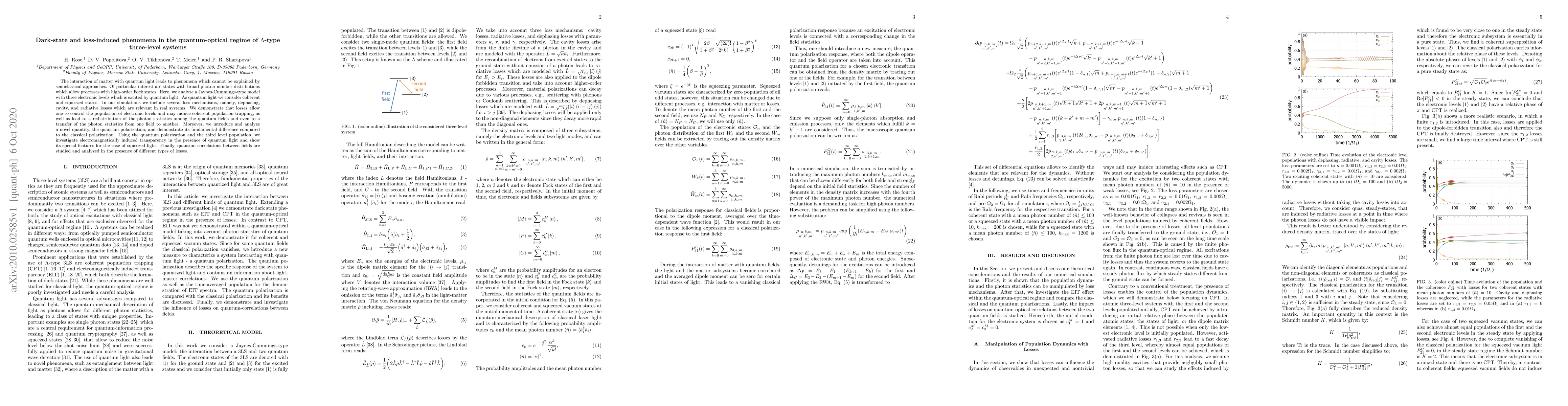 Researchers studied how quantum light interacts with a three-level system, discovering that losses can control population levels and induce transparency, as well as transfer photon statistics between fields.